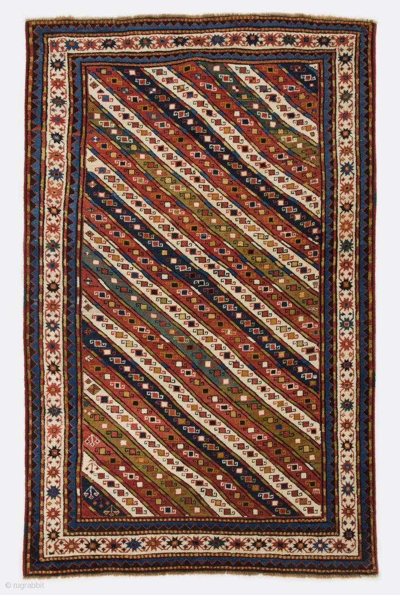 Antique Caucasian Karabagh Kazak Rug with colorful diagonal stripes.