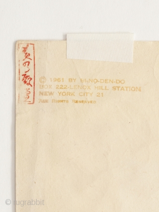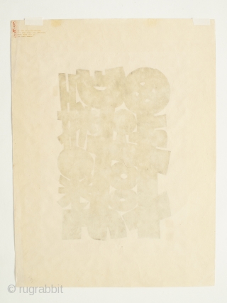 Haku Maki (1924-2000), Symbol, c. 1961, Woodblock print. Sheet size: 23.75" x 18" (60.3 x 45.7 cm). Image size: 16" x 11" (40.6 x 28 cm). Edition: 20/100. Signed: in pencil, Haku Maki, three seals in red. Condition: Good, some faint yellowing; red stamp on verso reads Copyright 1961 By Bi,No-den-do, Box 222-Lenox Hill Station, New York City 21 All Rights Reserved with a vertical red stamp. This apparently is a gallery stamp.