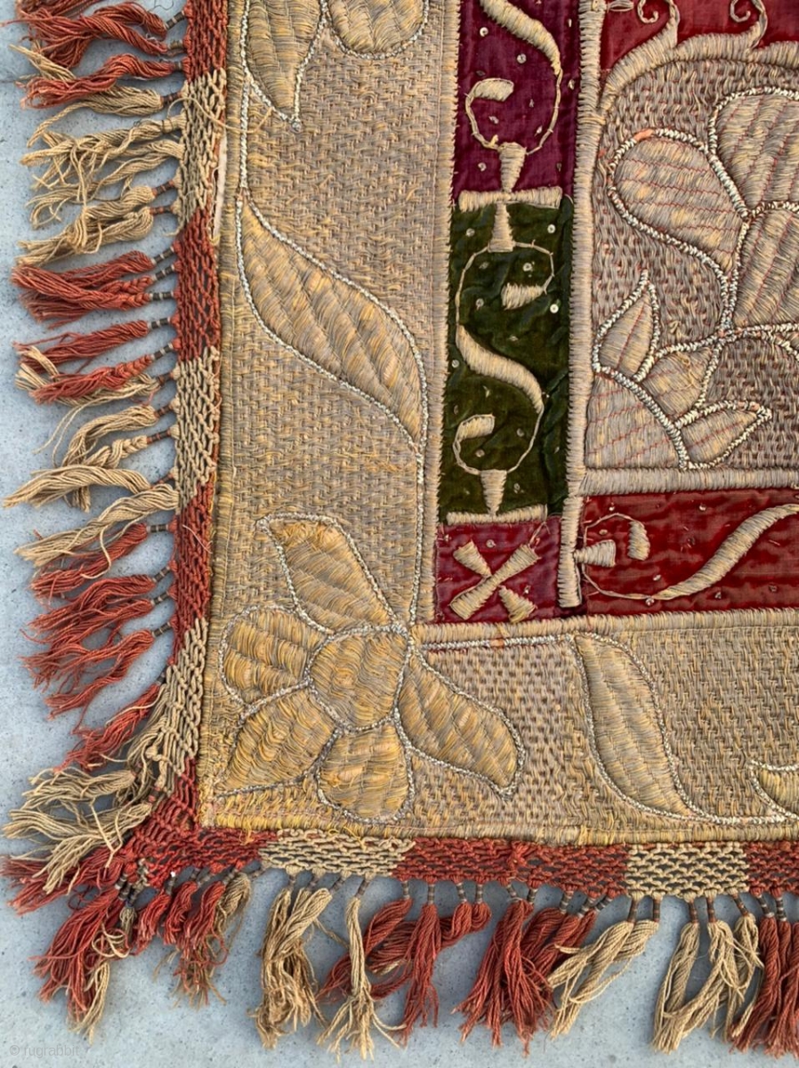Zardozi Kalabattu Embroidery (Real Zari) Work on Velvet The bichona With Print Backing, From the Royal Nawab Family of Madhya Pradesh. India. C.1900.Its size is 214 cms x 135 cms