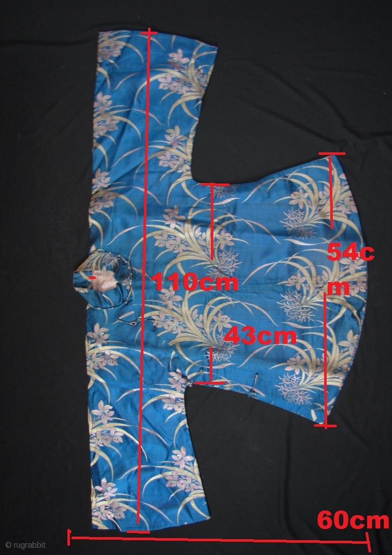 Stunning vintage/antique classic woman’s blouse circa early to mid 20th century with Chinese orchid pattern, symbolizing Spring and marital harmony. Excellent condition- clean, but could use a steam press. This is all hand tailored and hand sewn. Please note the top three button loops (not included would use gems or precious metal fasteners). Dimensions are in enlargements.