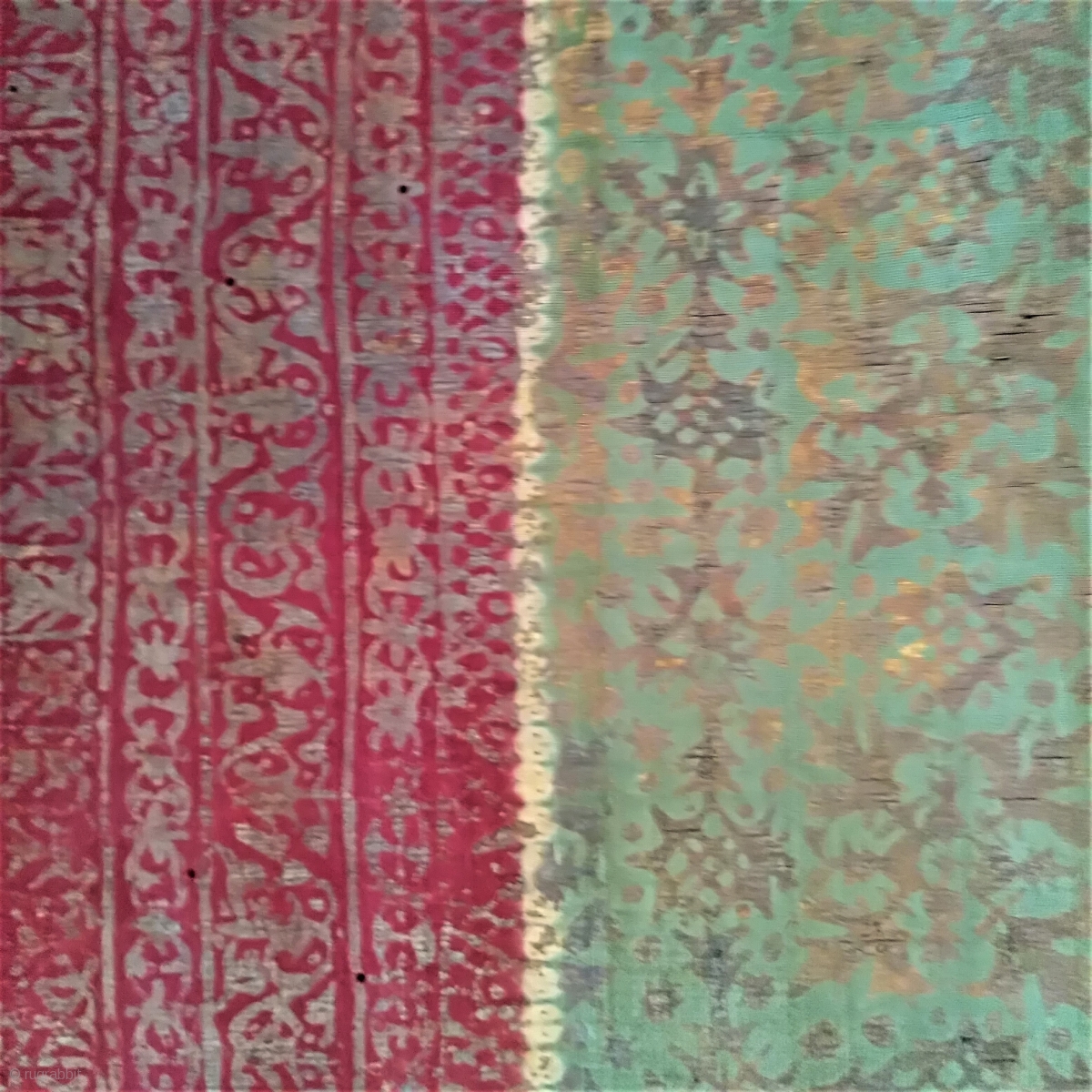 perada golden dresses for ceremonies in Indonesia Bali. Perada ornament technique, hip scarf, bronze pigment color painted pattern on silk batik. Early 1900's, the condition is good considering its age, of course some holes and cracks. The textile was restored in hours of work, the cracks were sewn, some repainted, the entire textile is sewn onto a fabric.