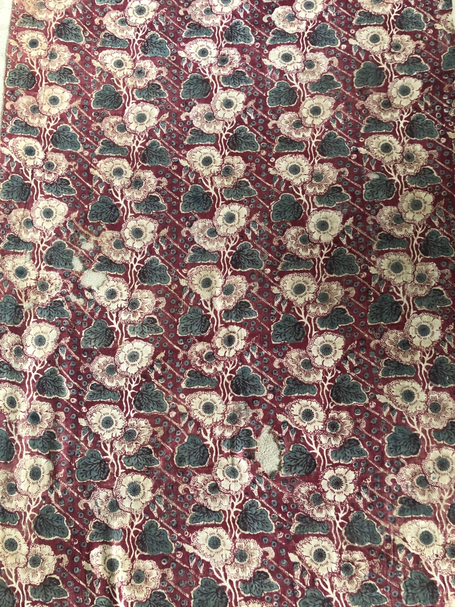 19th c. Indonesian export cloth, wonderful! metred trade cloth.printed with inclined red and blue floral pattern. handspun. size:2085 x 935. more cloths on www.tinatabone.com