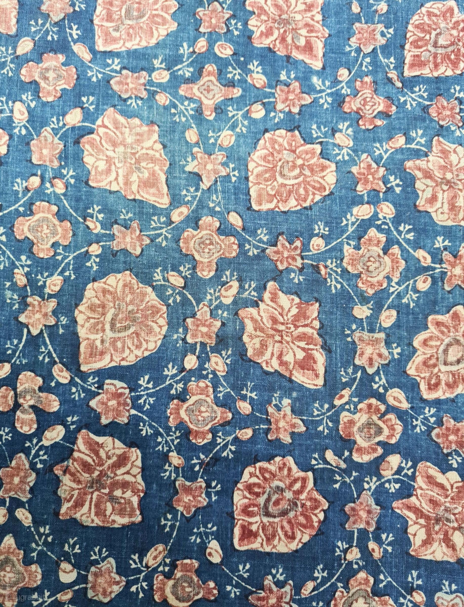 Floral Chintz Kalamkari Fragment Hand-Drawn Mordant-And Resist-Dyed Cotton,From Coromandel Coast South India. India.
