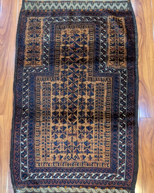 Antique Baluch prayer rug. Full kilims ends, full pile and no repairs. Hard to find them in this condition.