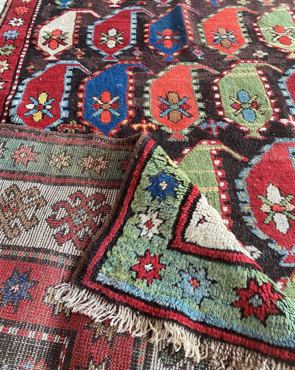 Late 19th Century with low/medium pile but great condition. Lovely boteh motif pattern. 112x260 cm. Needs a wash.
