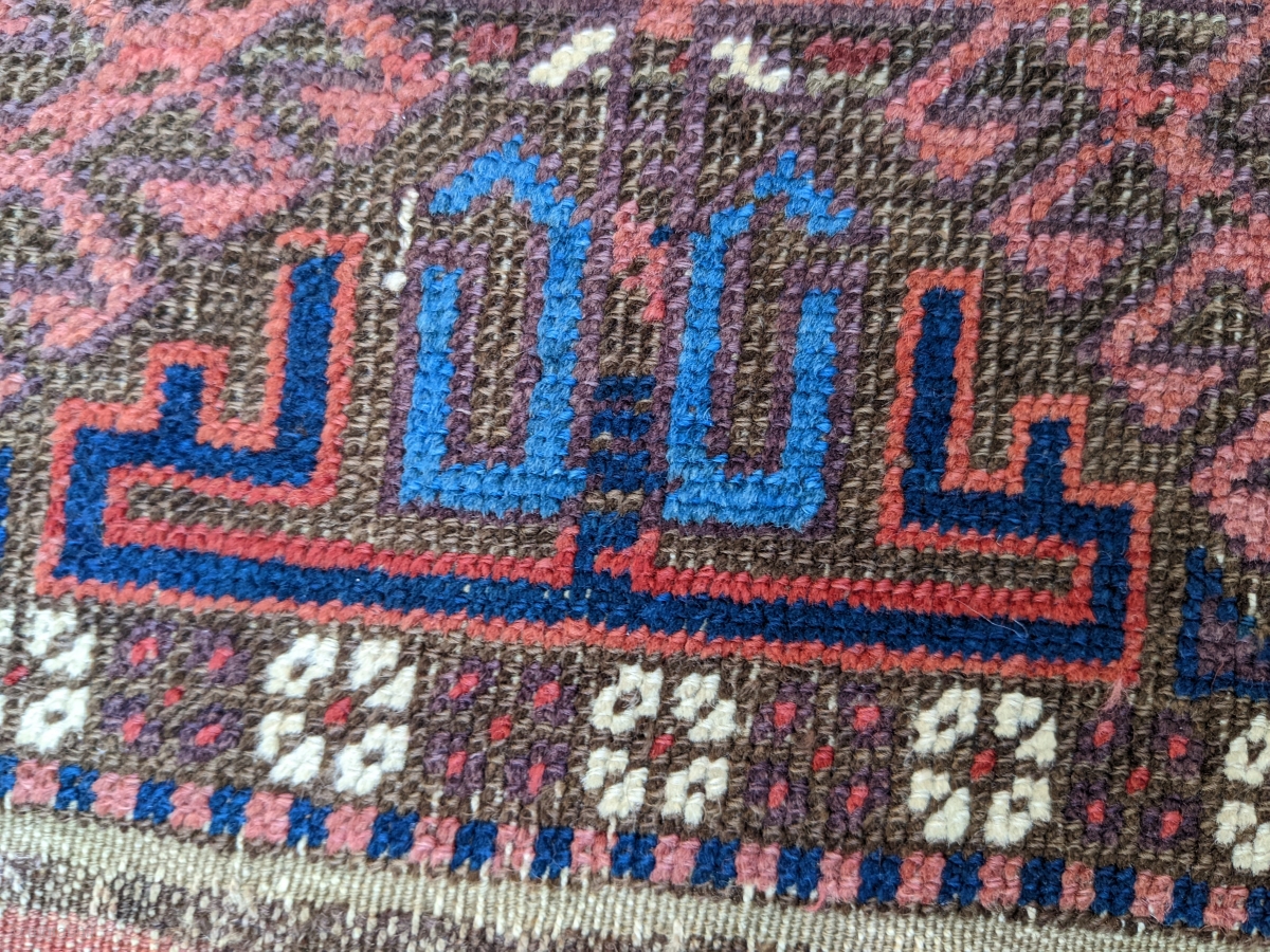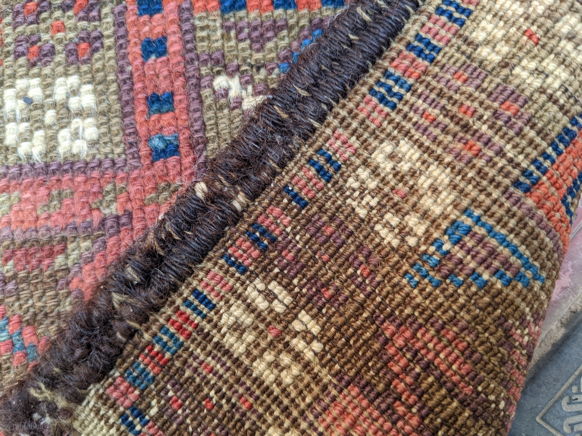 Symmetrical knotted 19th century Bahluli Baluch with a very wide range of colors. Original sides and no repairs. 3'3" x 5'4" or 162 x 99cm.