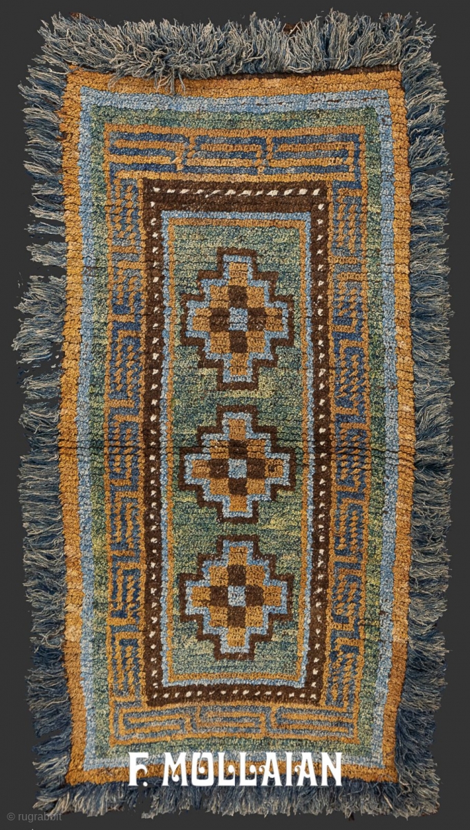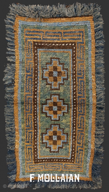 Beautiful Green-Tone Tibetan Antique Hand-Knotted Rug, 19th Century