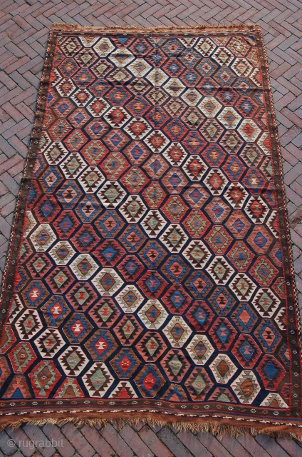 antique Veramin kilim 263 x 159 cm (8ft 9"x 5ft 4") last quarter 19th century, all natural dyestuffs, good complete condition all around with mild traces of ageing 2 very small holes, no restorations