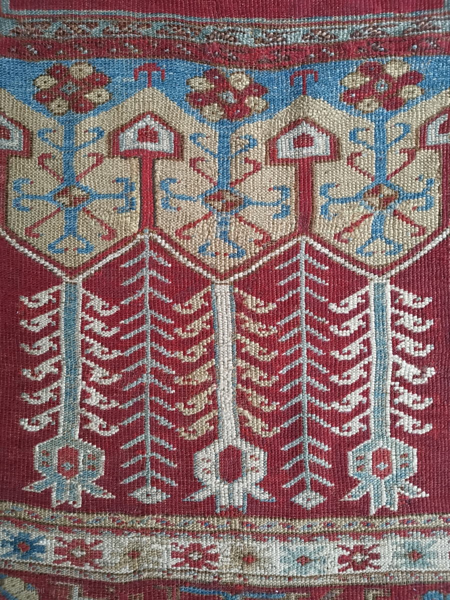 Ladik Prayer rug 199 x 118cm Quite a lot of old repair but otherwise sound.