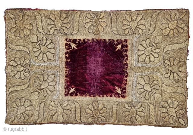 Zardozi Kalabattu Embroidery (Real Zari) Work Velvet Bichona, with real zari frills Known as Takhatposh, With Manchester Print Backing, From the Royal Nawab Family of Uttar Pradesh. India.