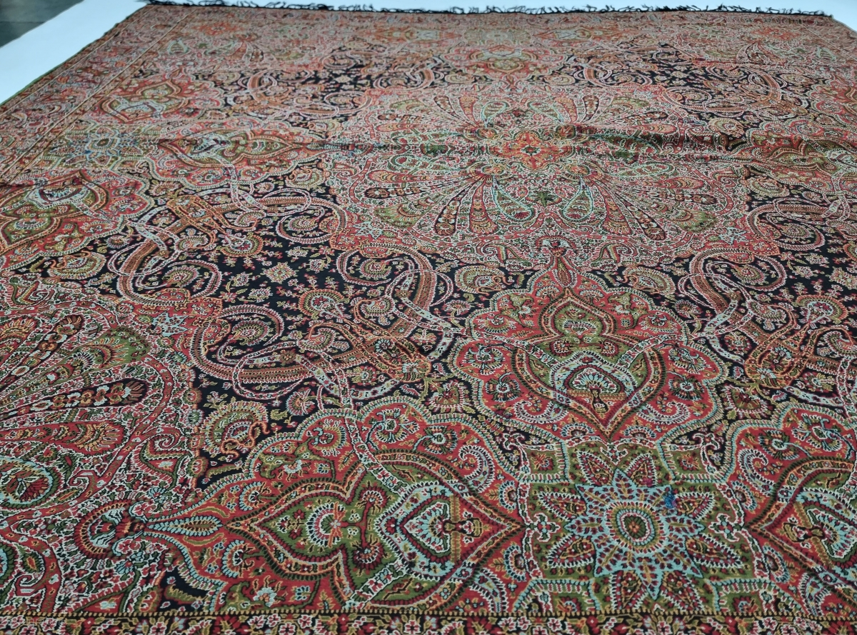 Very Unique European Square Moon Shawl From Probably Woven in Nimes, France.