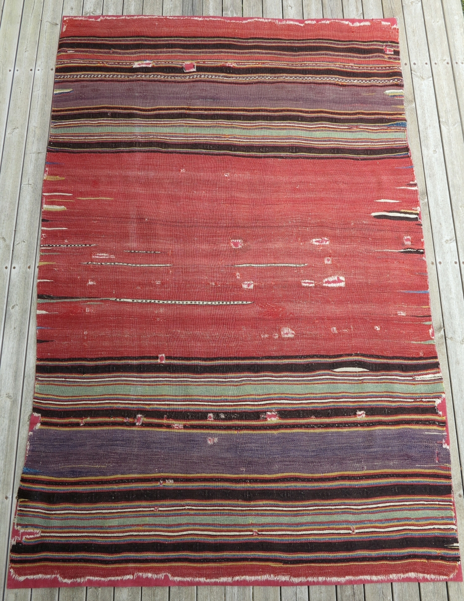 Early 19th century South Anatolian Kilim Sofreh?, 156x248cm, professionally mounted on naturally dyed linen. Antique Minimalism!