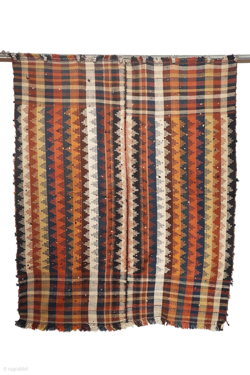 This antique moj or jajim kilim is woven with natural dyes. The wool is finely spun. Woven in two pieces and joined in the center. You can buy this jajim directly from our web: