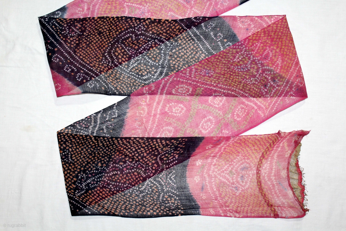 Turban(Pagh) Tie and Dye,Worn During the Monsoon Fine Cotton Mull-Mull.C.1900.Royals Family Rajasthan India. Length 15 to 18 miter.(DSC05750).