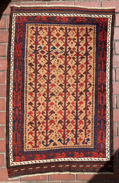 Small camel field Baluch rug. All natural dyes. Size:50 x 32 inches.