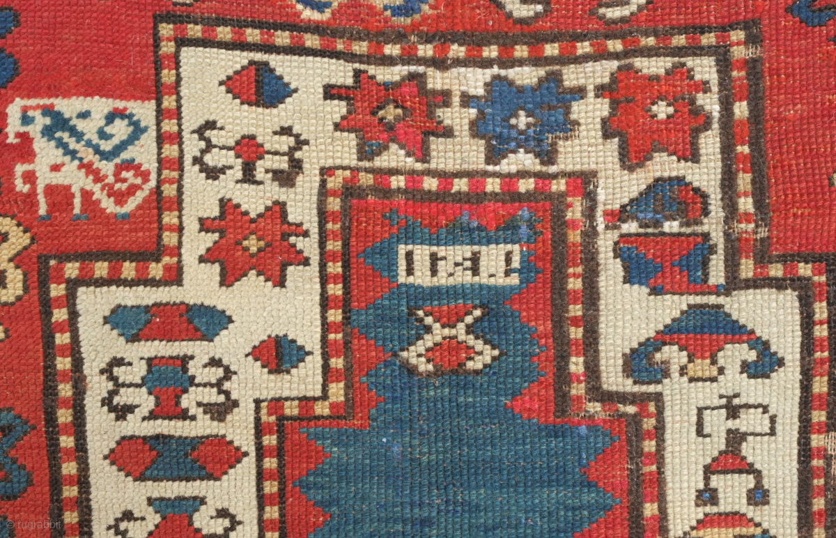Kazak prayer rug, dated to about 1876. The date is inscribed at the top of the mihrab.