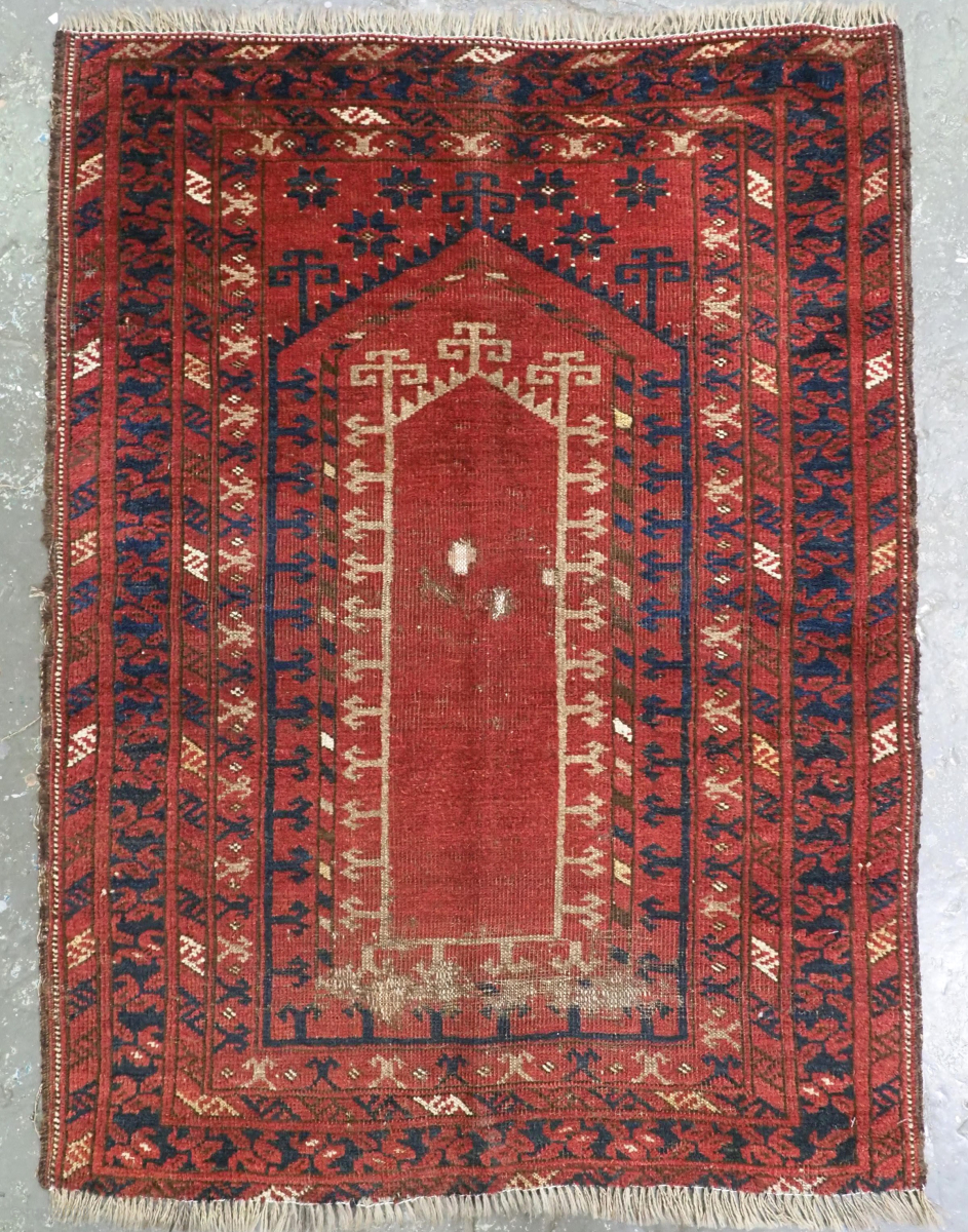 The rug is in fair condition, with areas of heavy wear due to actual use for prayer, the rug is in un-touched original condition.