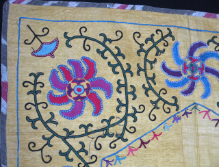 Shahrisabz Prayer nim suzani, emrboidery on Adras ikat, saturated colors 19th cent. size : 55" x 40" - 140 cm x 102 cm vedatkaradag@gmail.com