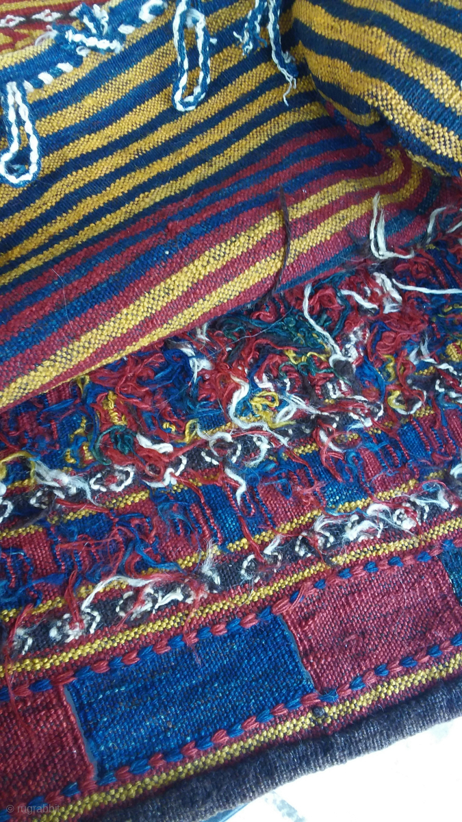 Rare pair of Uzbek, pannier bags, worked in interlok tapestry weave, clean.