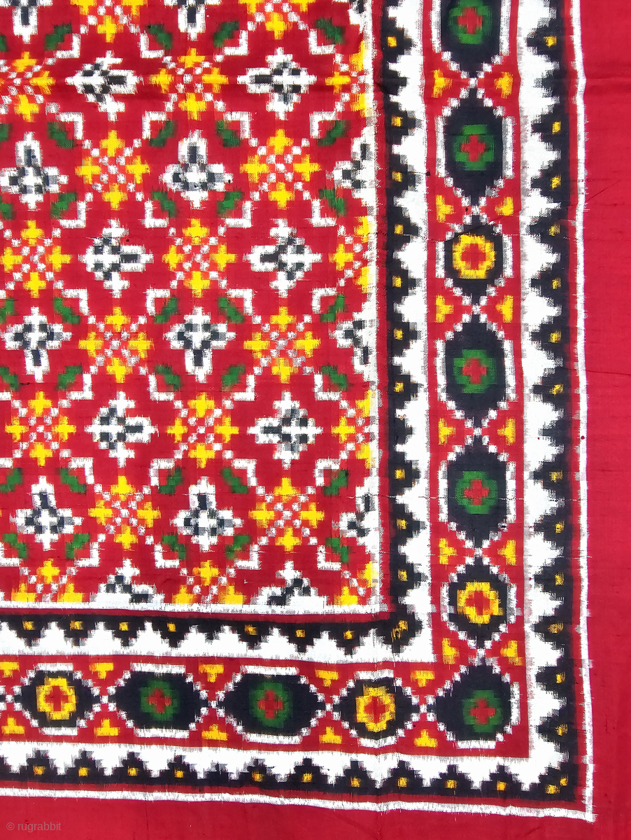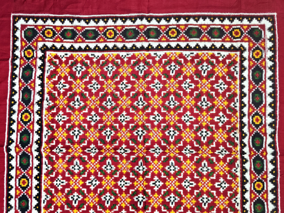 An Rare And Unusual Design Patola Rumal, Silk Double Ikat. Probably Patan Gujarat. India.