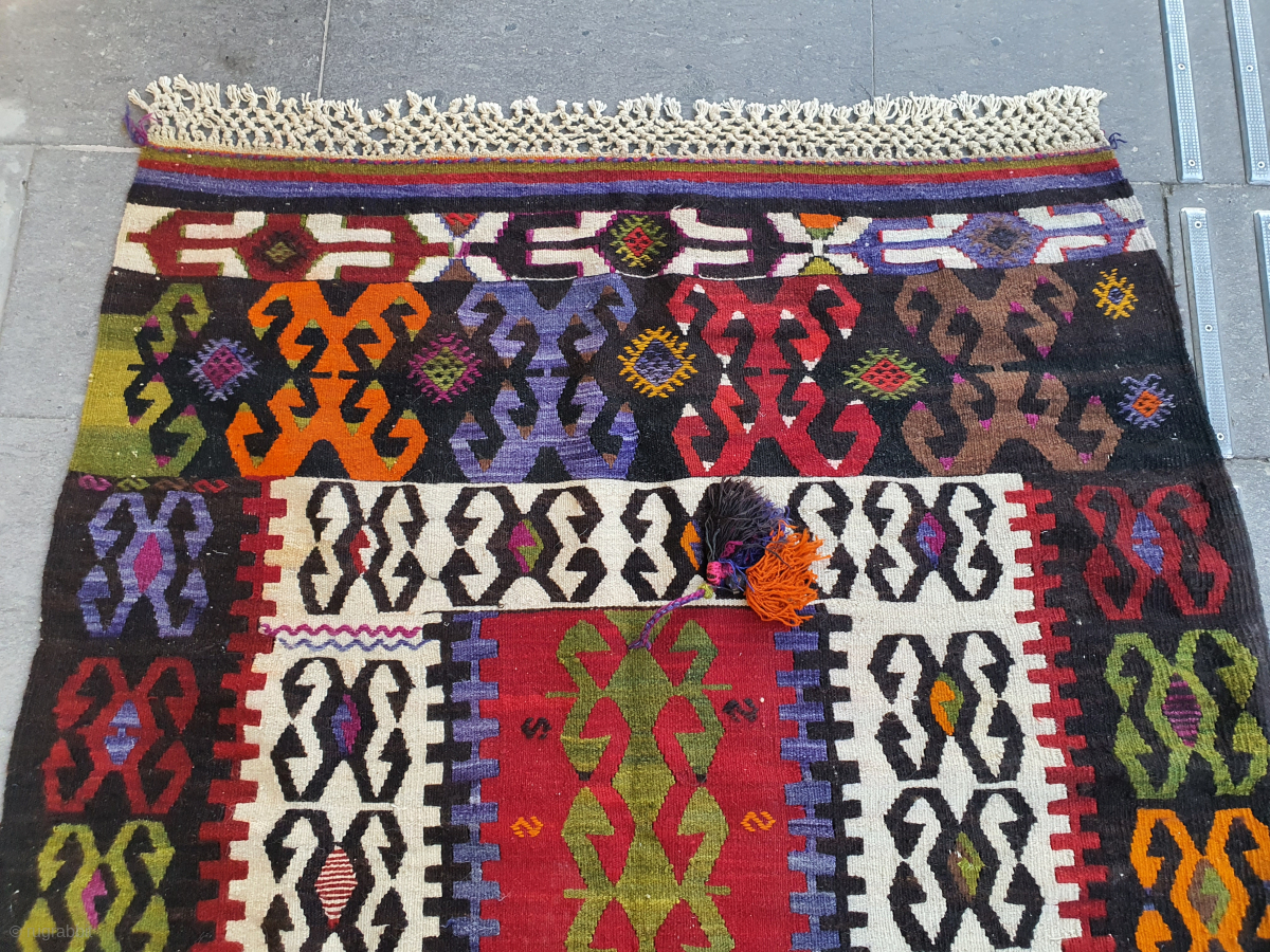 120x198 cm Cappadocia Karaburna kilim, 1970 yaers old nevsehir anatolian kilim