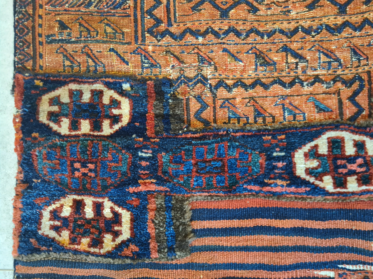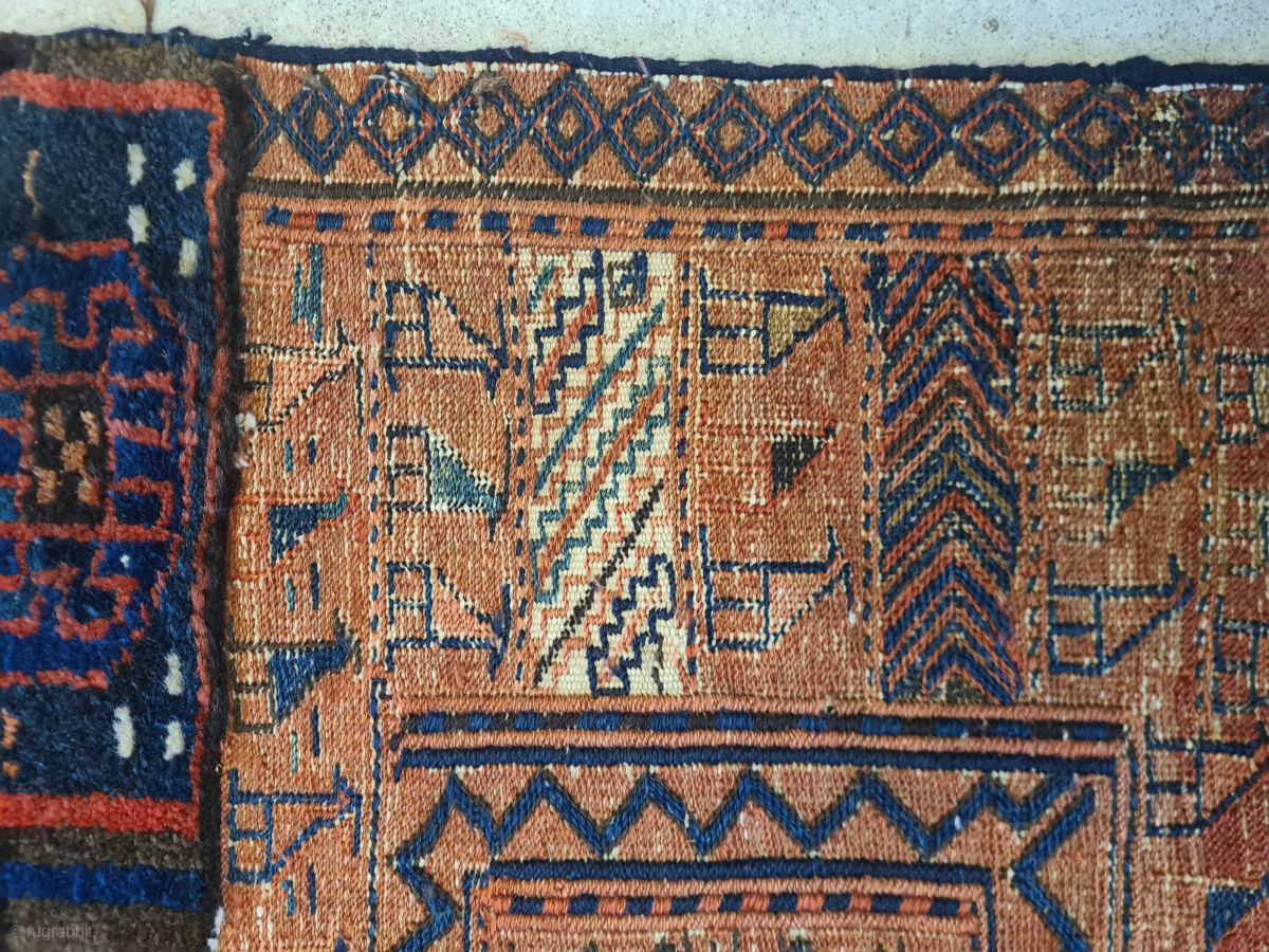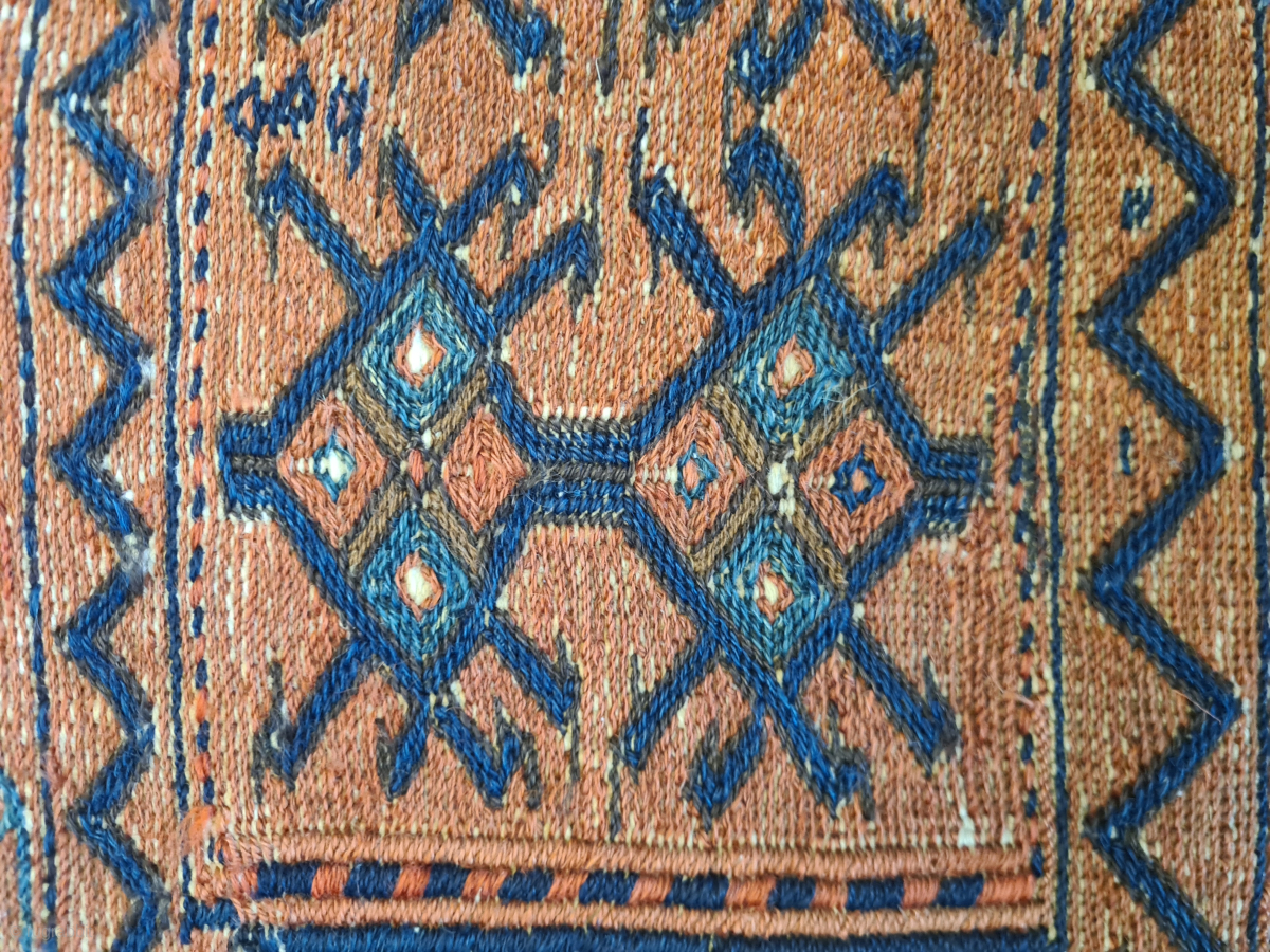 Antique opened bachtiari sumakh camel bag in three techniques (kilim weaving, sumakh weaving, and knotting) in natural colors and beautiful camel and animal patterns. Dimensions: 200x85cm. Wool on wool. Cotton in the weave provides a beautiful contrast.