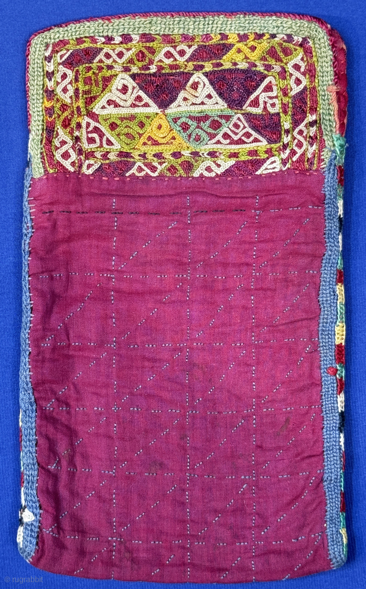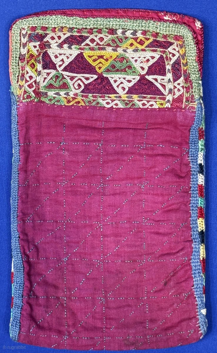 Antique Turkmen - Chodor fine silk cross stitched embroidered mini bag. Used and kept in very good condition because it has very good patina. Circa - 1920s Size - ''23 cm x 13 cm'' turkmansilver@gmail.com.