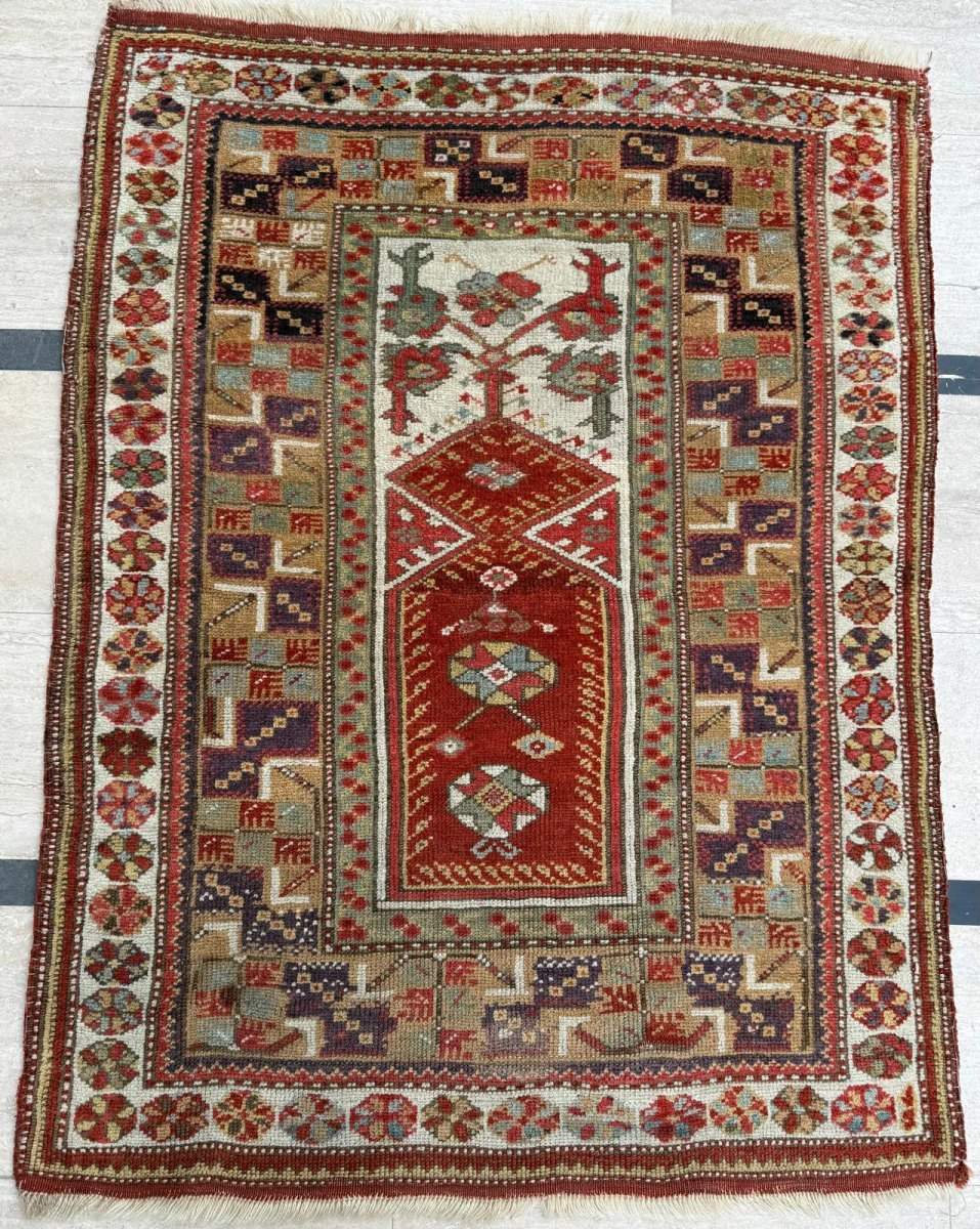 Mid 19th century Milas Prayer Rug. Size 102 x 130 cm. Please send me direct mail.