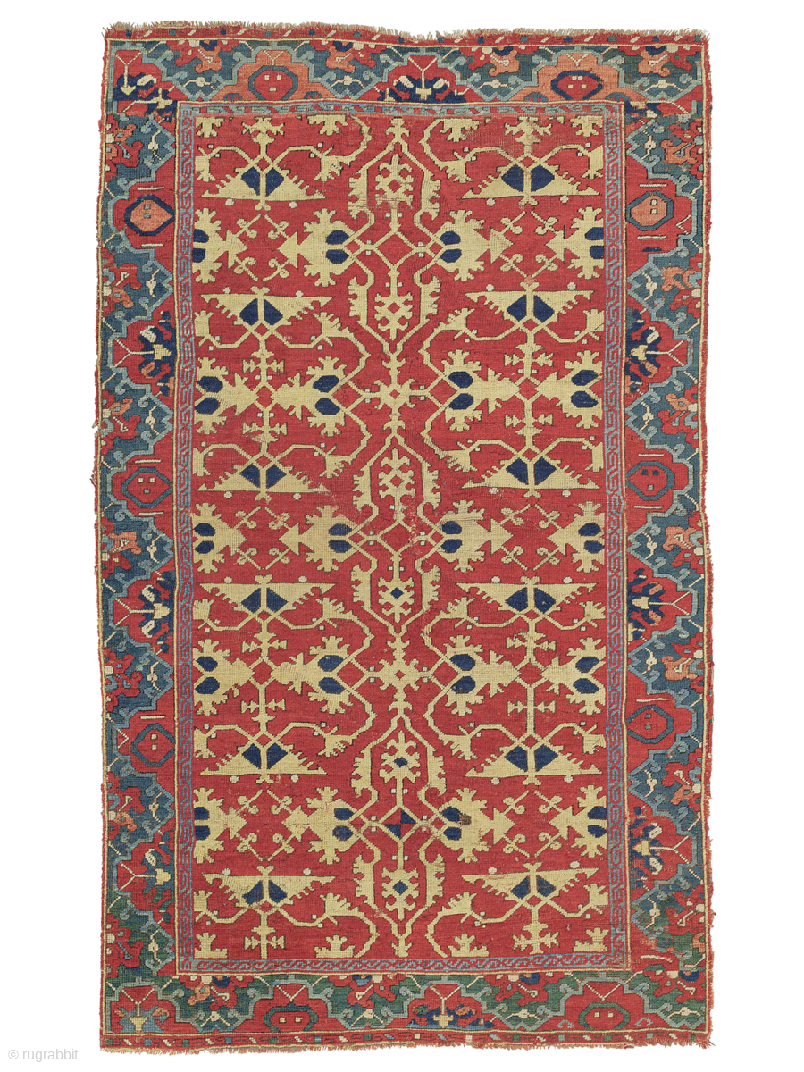 *The name Lotto Carpet refers to a type of 16th/17th century Turkish carpet appearing several times in the works of Venetian painter Lorenzo Lotto. For an excellent reference, see the last images showing a 16th century Lotto rug sold at Christies which has a strikingly similar design