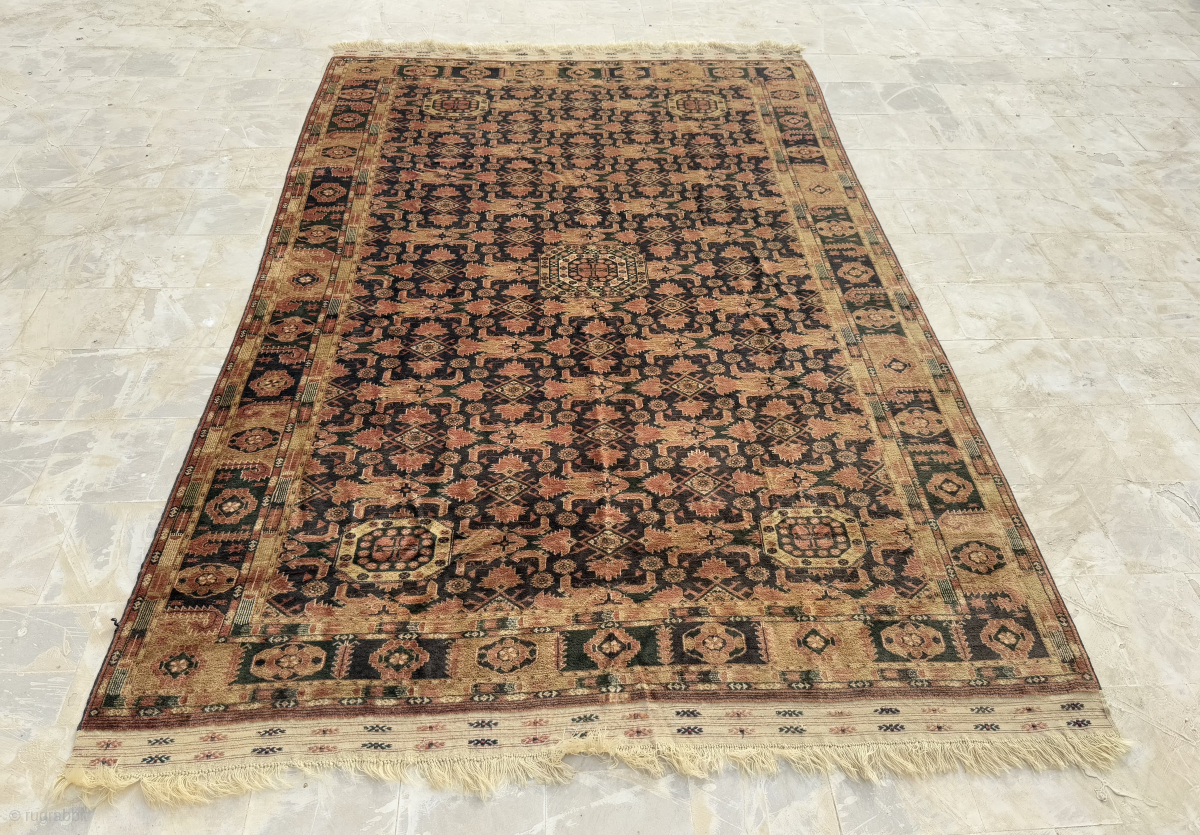 Fabulous Old Hand Knotted Turkmen Signed tccp Wool Large Size Rug.