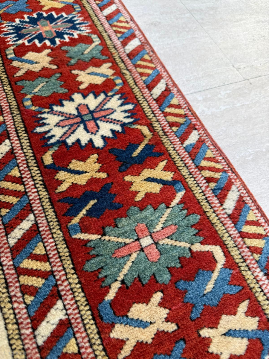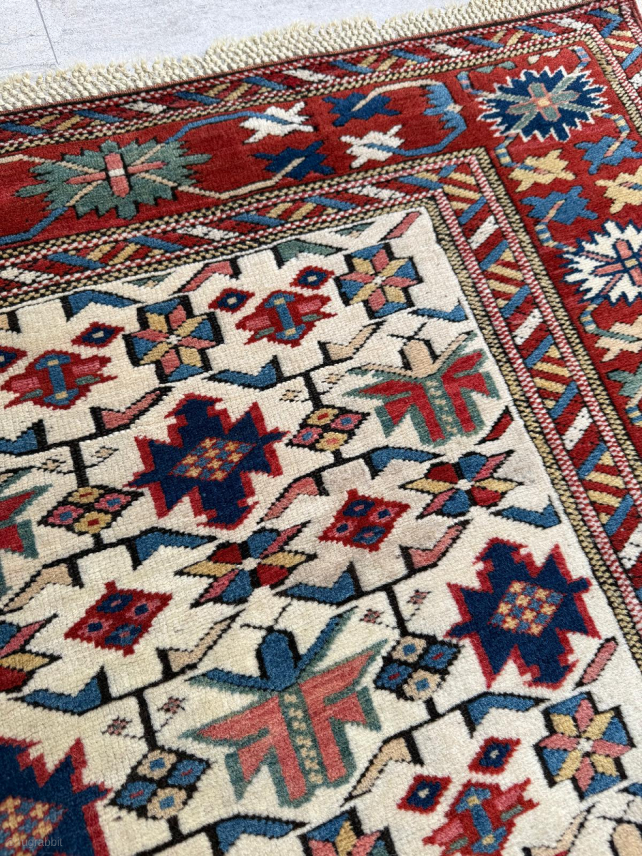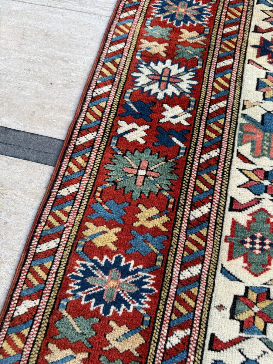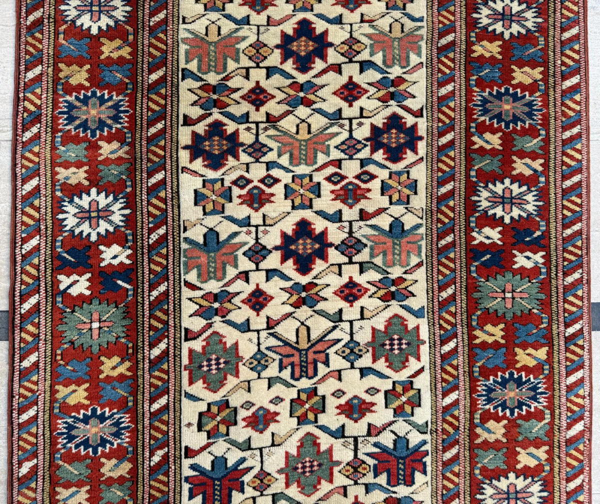 Circa 1870. White background kuba shirvan rug. Great condition. Dimensions: 96 x 250 cm. Please send me direct mail.