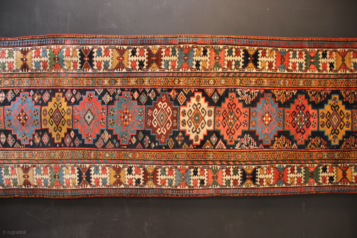 Antique Kurdish runner in excellent pile, with all natural dyes. 105 x 412cm / 3'5" x 13'5"
