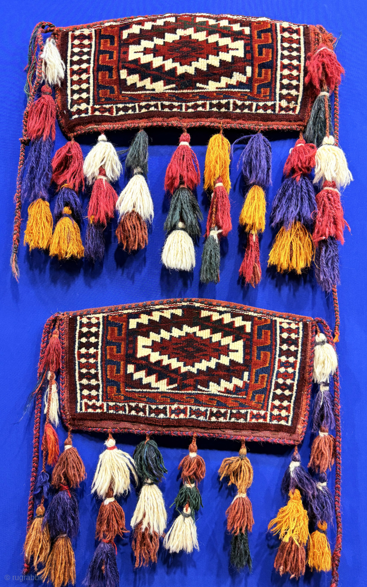 Turkmen - Yomud wool pair of Knee Pads. Size - 14'' x 8'' - ''35 cm x 20 cm without tassel x Tassels : 22 cm'' turkmansilver@gmail.com