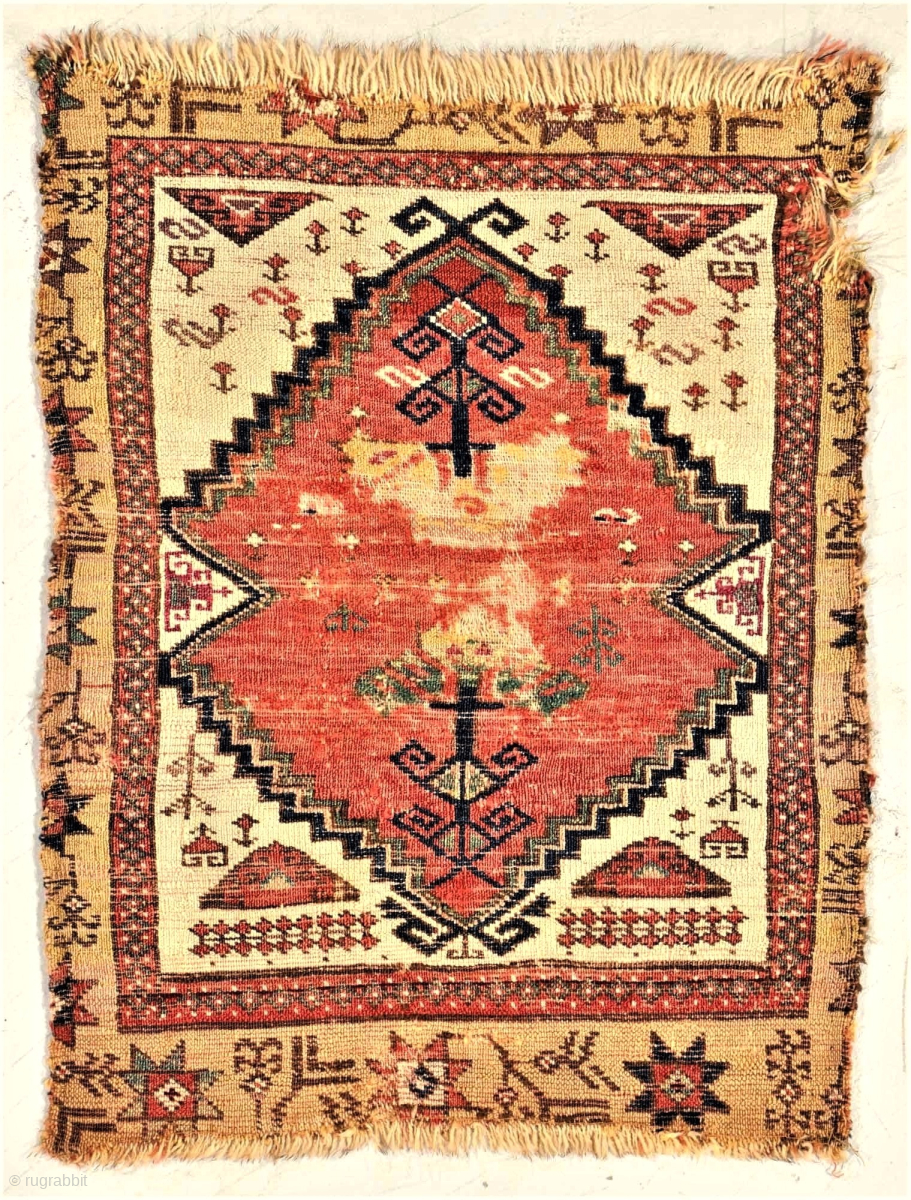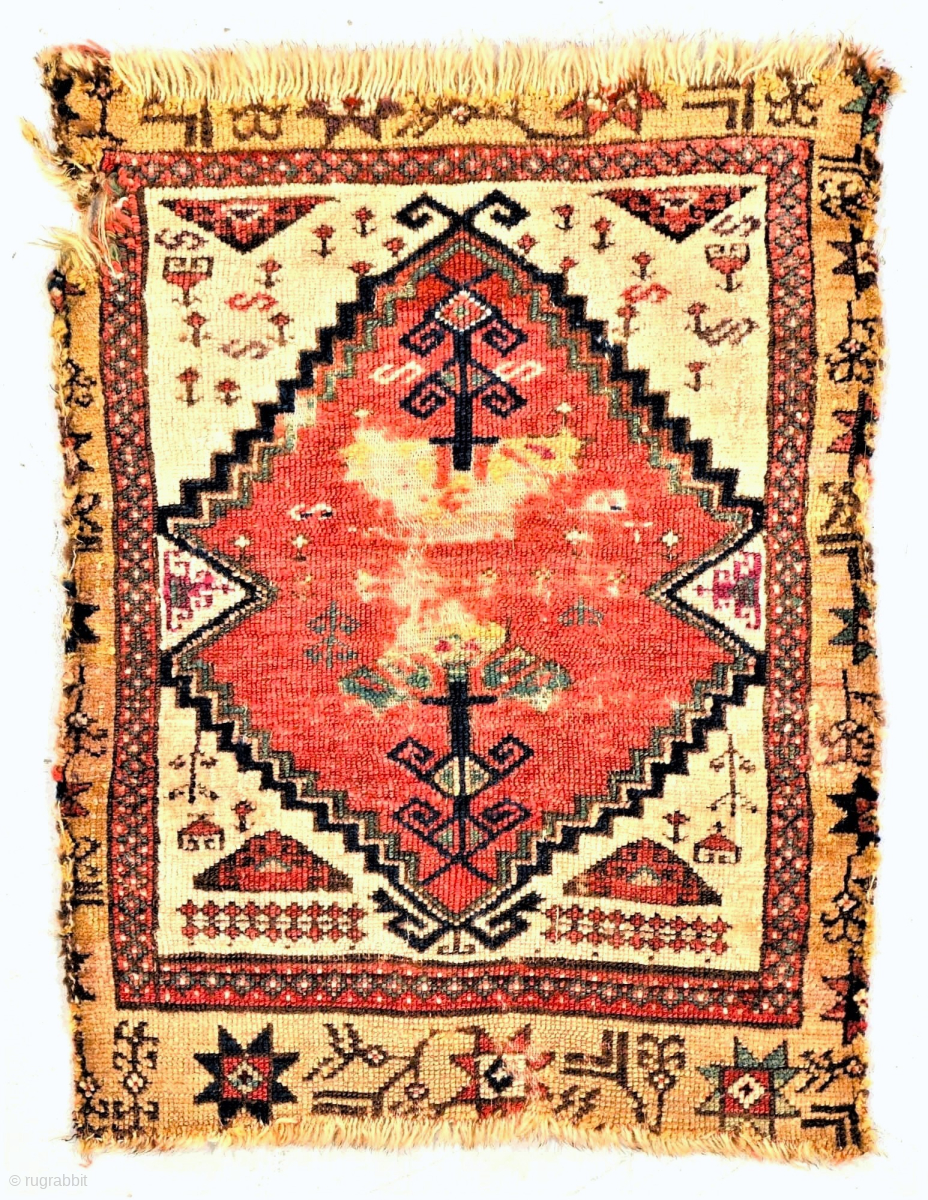 An outstanding early yastik, untouched, ca. 1800, or before,the first period of this group of highly collectible yastiks. Excellent spacing, proportions, and detail, thick pile, condition as shown. Note the back. Compare to Douglas and other owners in Morehouse, b., yaastiks, Page 57, Number 89. From my private collection, now available.