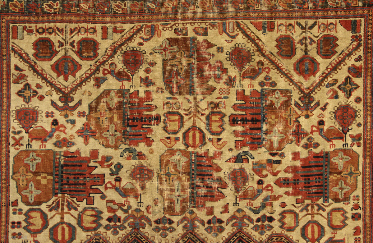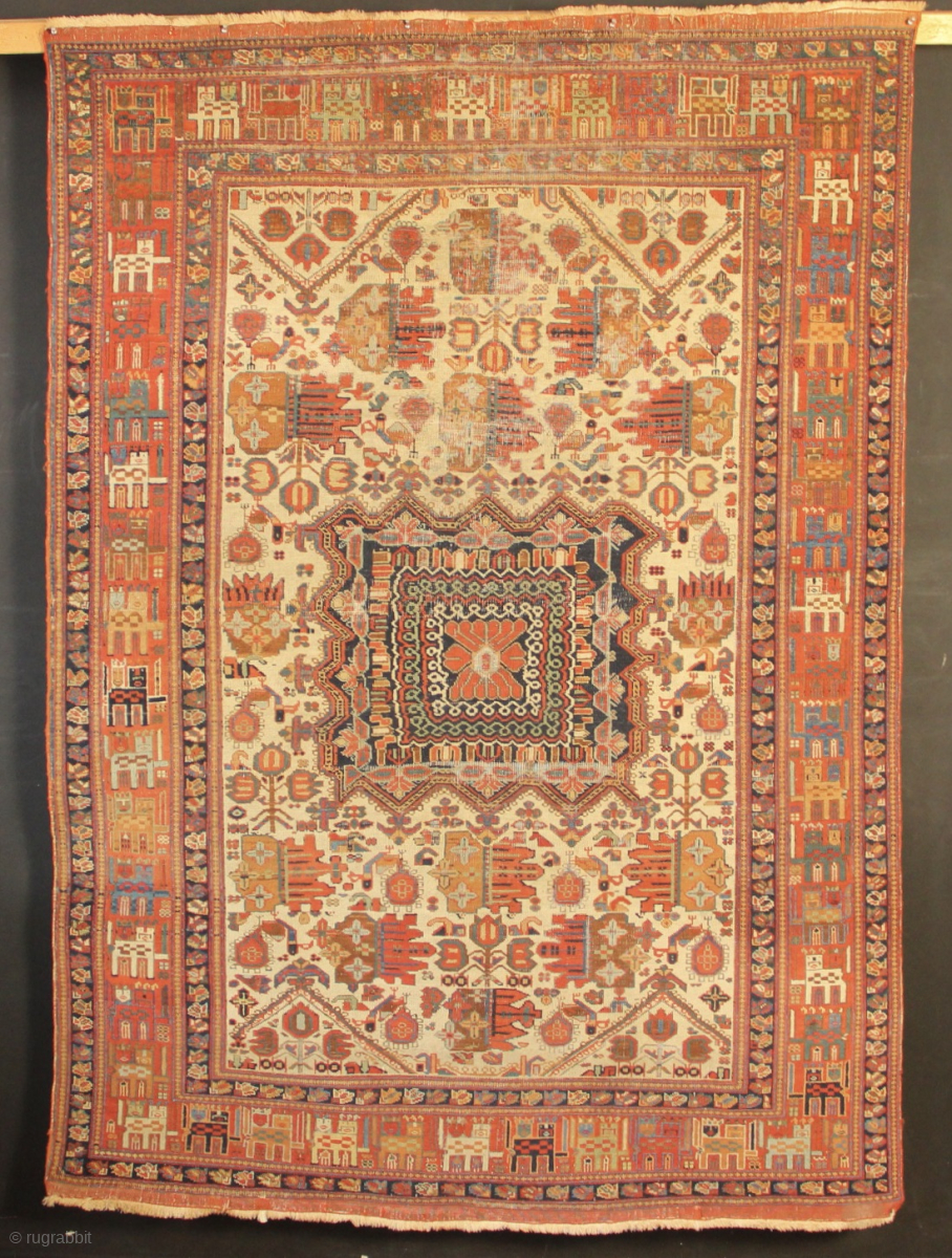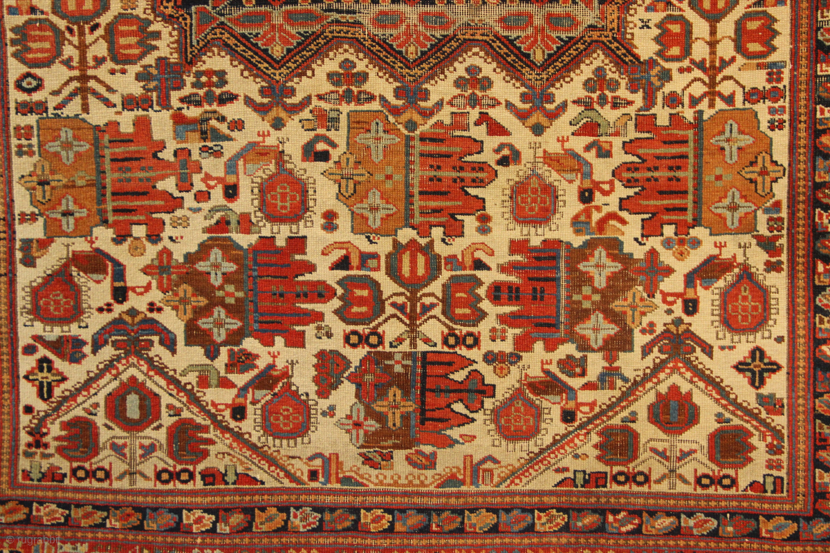 What a cool border on this extra fine Afshar rug. 4'1" x 5'10" / 124 x 179cm