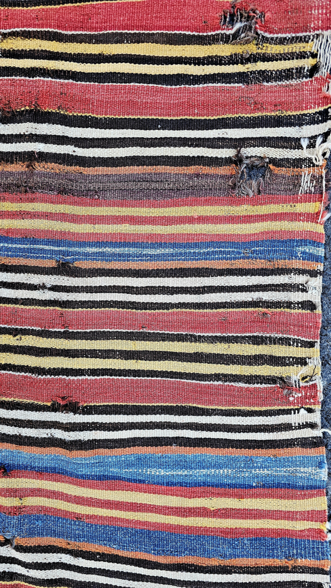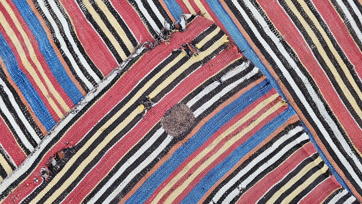 Some kilims were specially woven at different stages of life: before marriage, during marriage for children, and even for funerals, to be donated to the mosque. The striped patterns are frequently seen in kilims and generally symbolize simplicity, fluidity, or abundance (fertility). The craft of making kilims is considered more than just a skill; it is a living history that reflects the weaver's life story, culture, and beliefs."