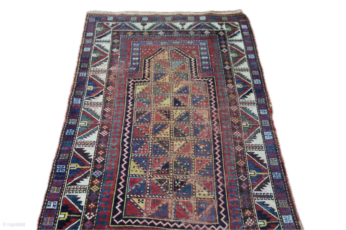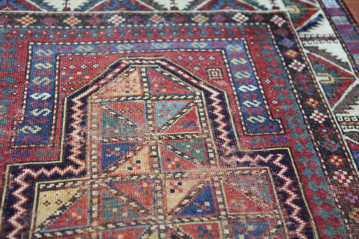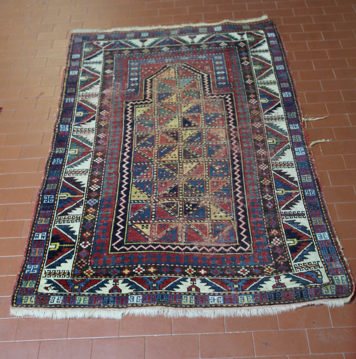 Quite rare composition of the ground with polychrome triangles generating other shapes such as squares and other intriguing labyrinths.