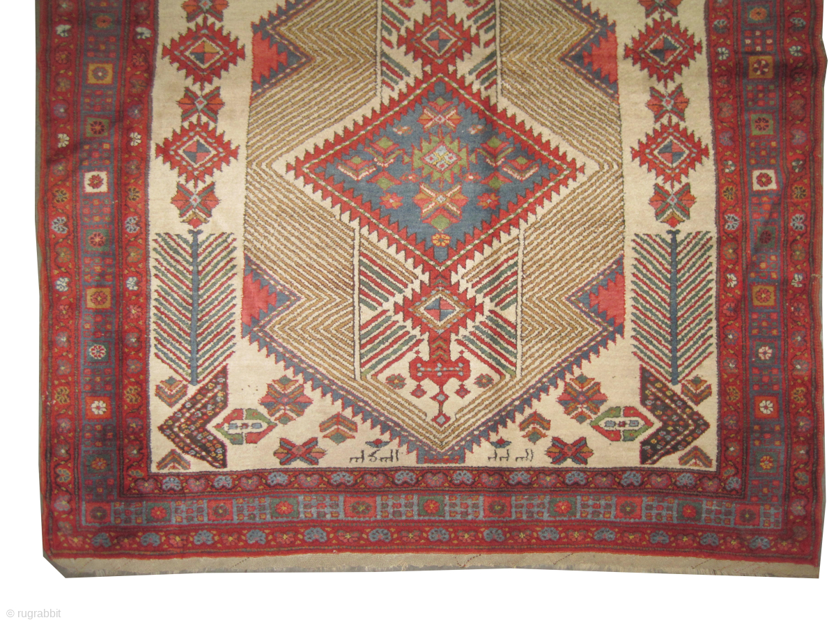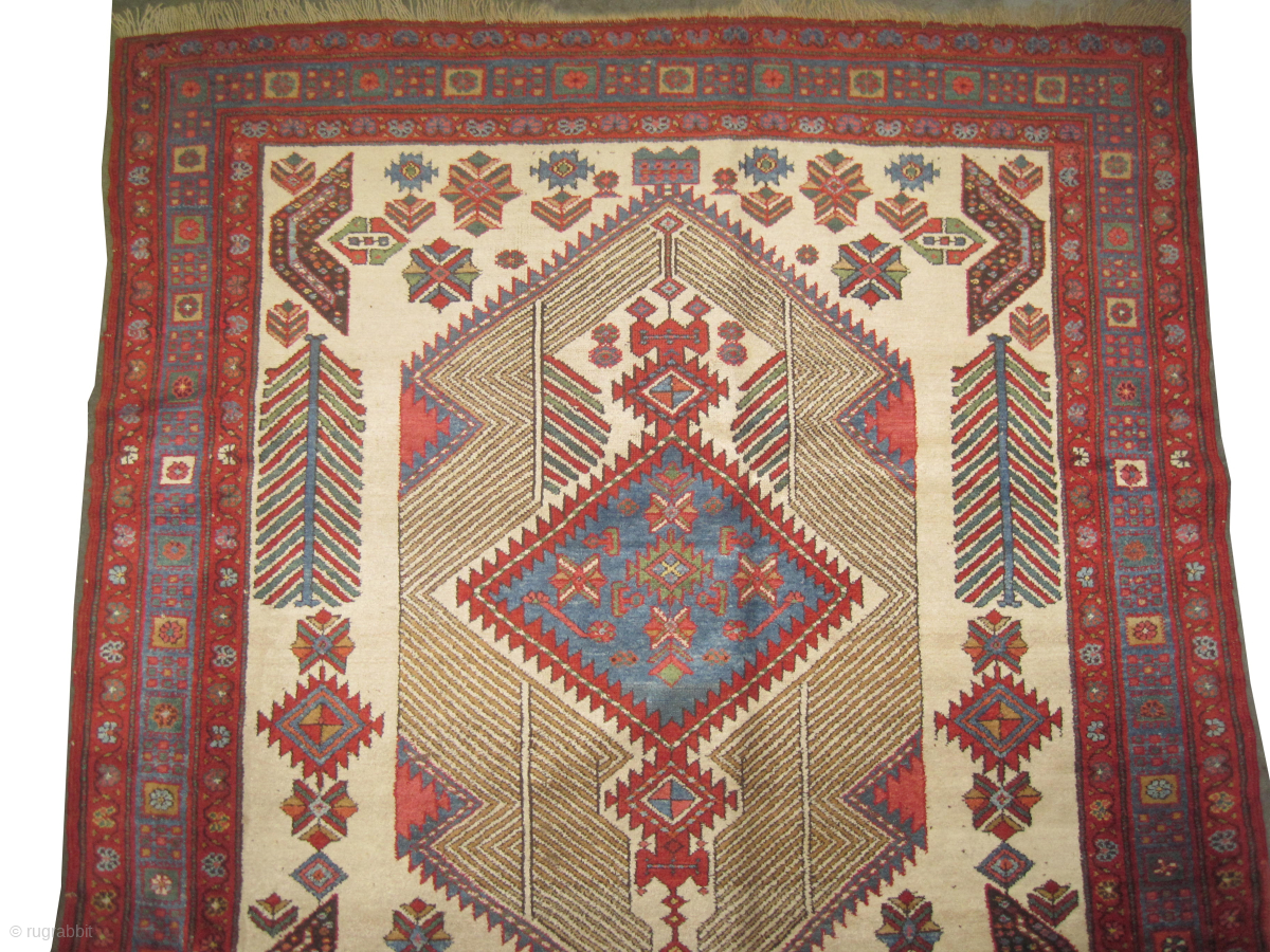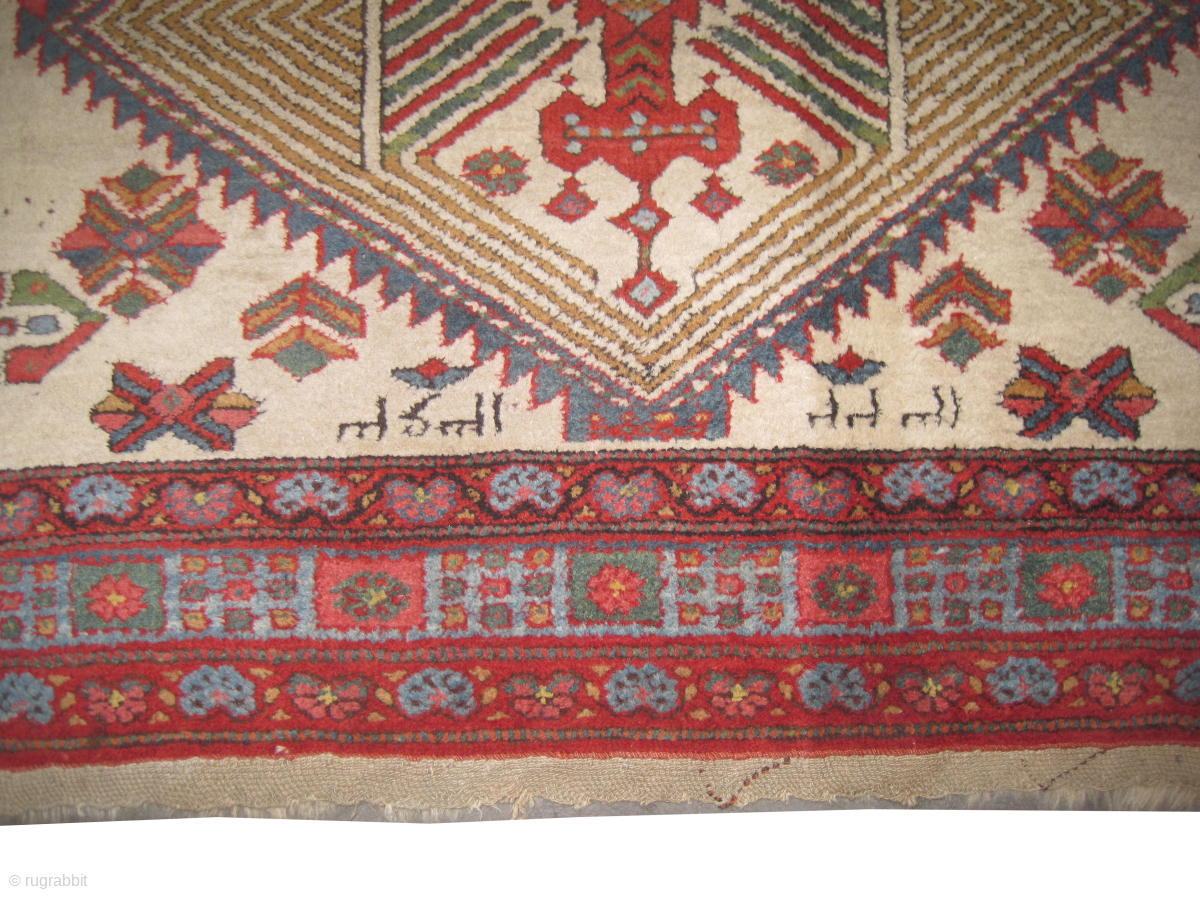 High pile, in perfect condition, vegetable dyes, the warp and the weft threads are 100% wool, the shirazi borders are woven on two lines, up edge is finished with 4cm kazak technique kelim, the knots are hand spun lamb wool, ivory background, rare example, soft as an handkerchief, high standard quality and in its original shape.