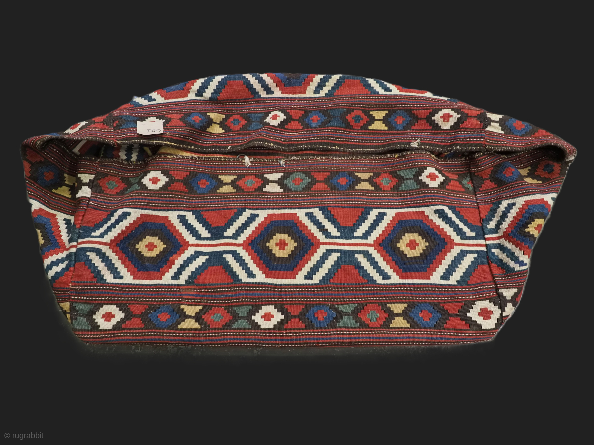 a complete south Caucasian or Shahsavan mafrash storage bag with striped base.