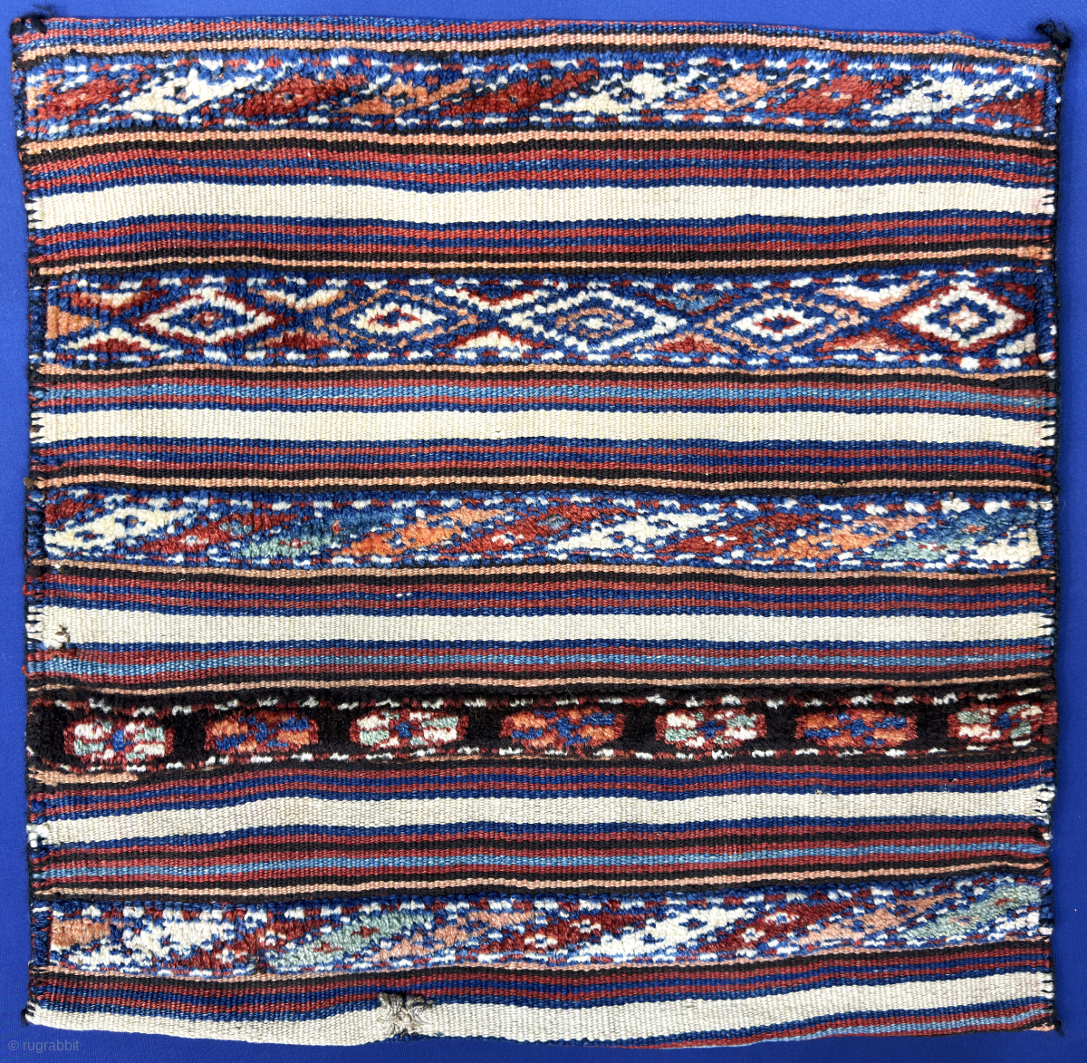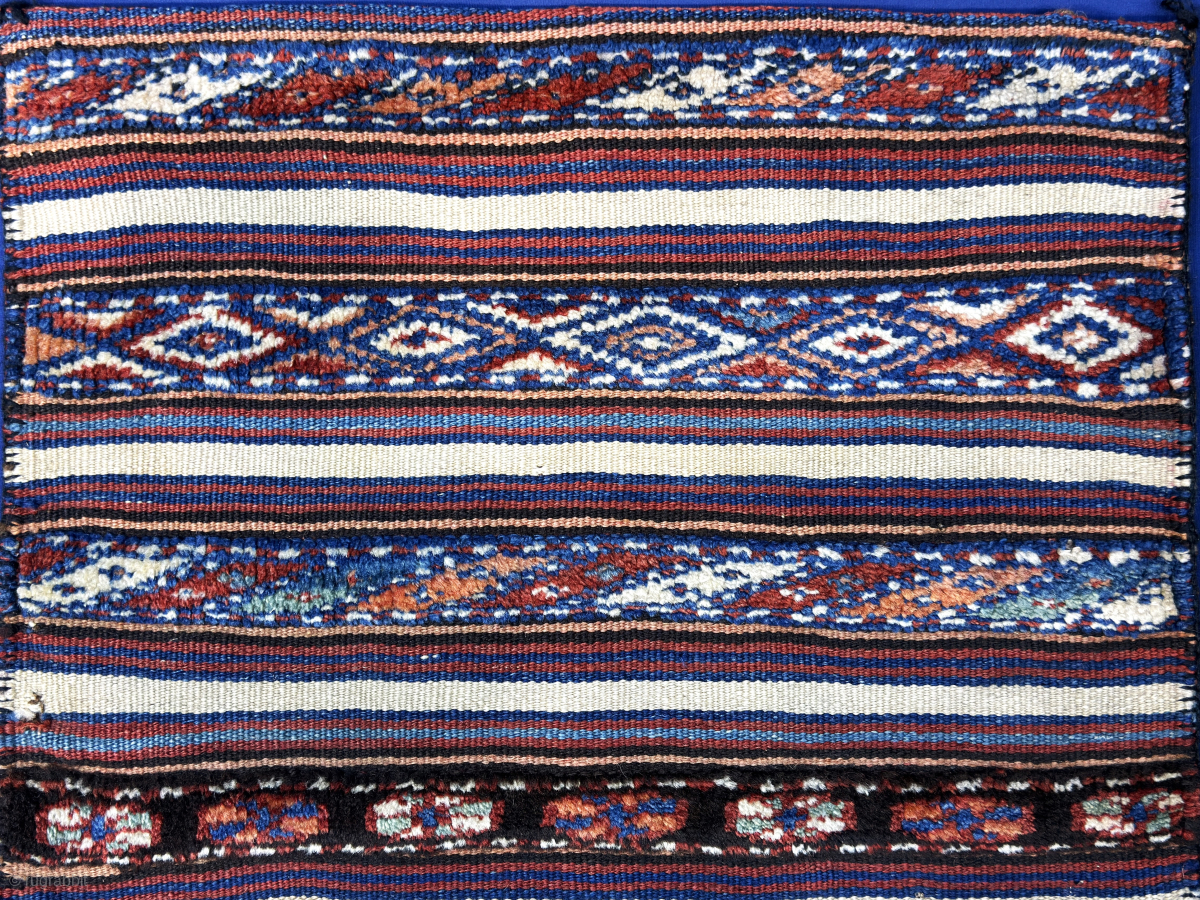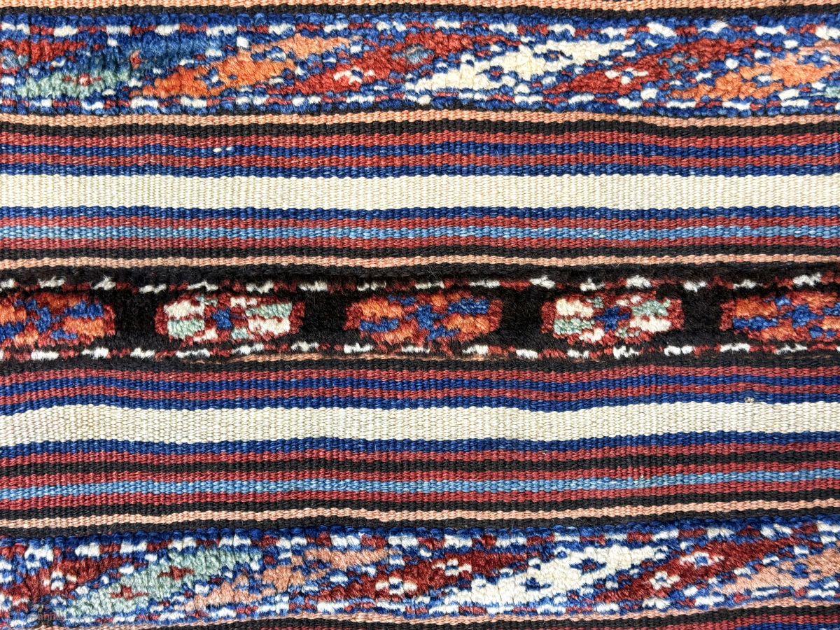 Caucasian pile and kilim bag with original backing. Fine weave with natural high altitude wool. Amazing saturated natural colors from vegetable dyes. Size : 20'' x 20'' - ''51 cm x 51 cm'' turkmansilver@gmail.com.