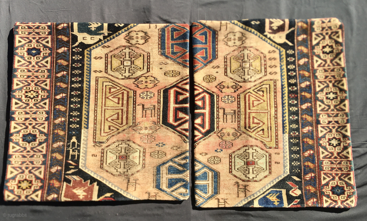 Shirwan Kuba rug fragments turned into two lovely pillows with black cotton back and zipper.