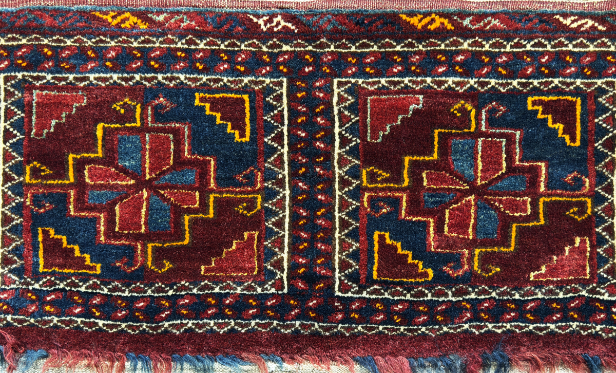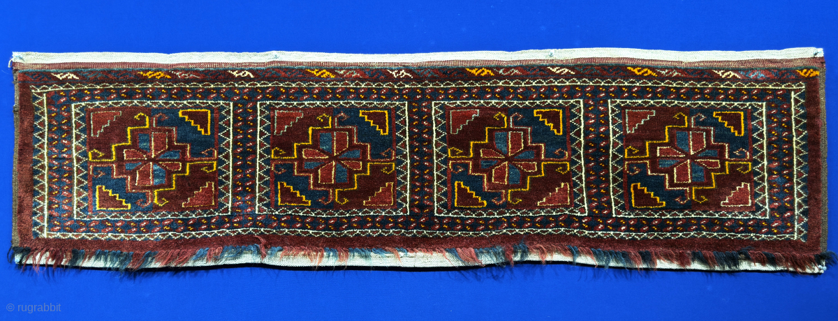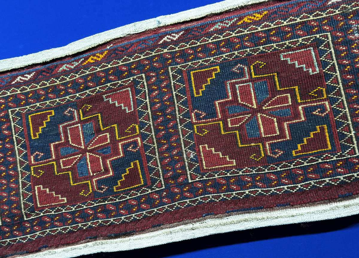 Antique Turkmen - Ersary Tribal Torba. Great condtion without any wear and in full pile 4 Gul torba. Saturated natural colors from vegetable dyes. Fairly in good condition. Size : 59'' x 15.5'' - ''150 cm x 40 cm'' turkmansilver@gmail.com.