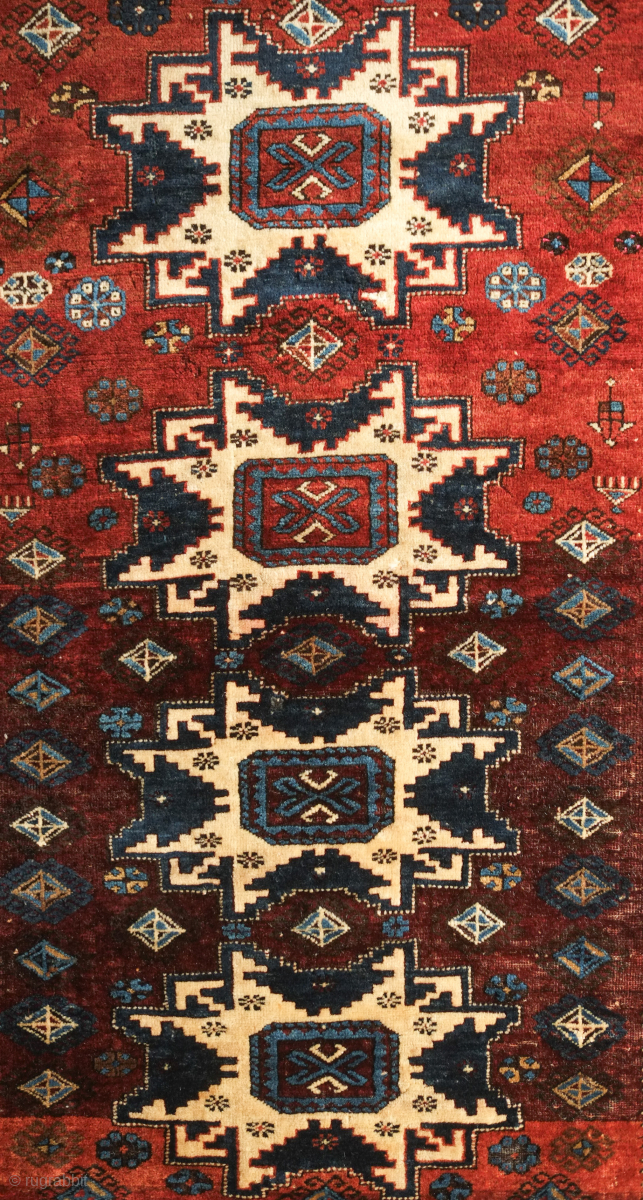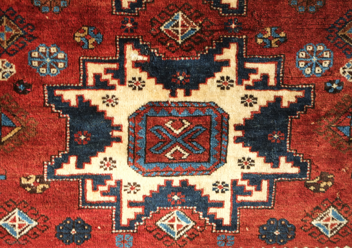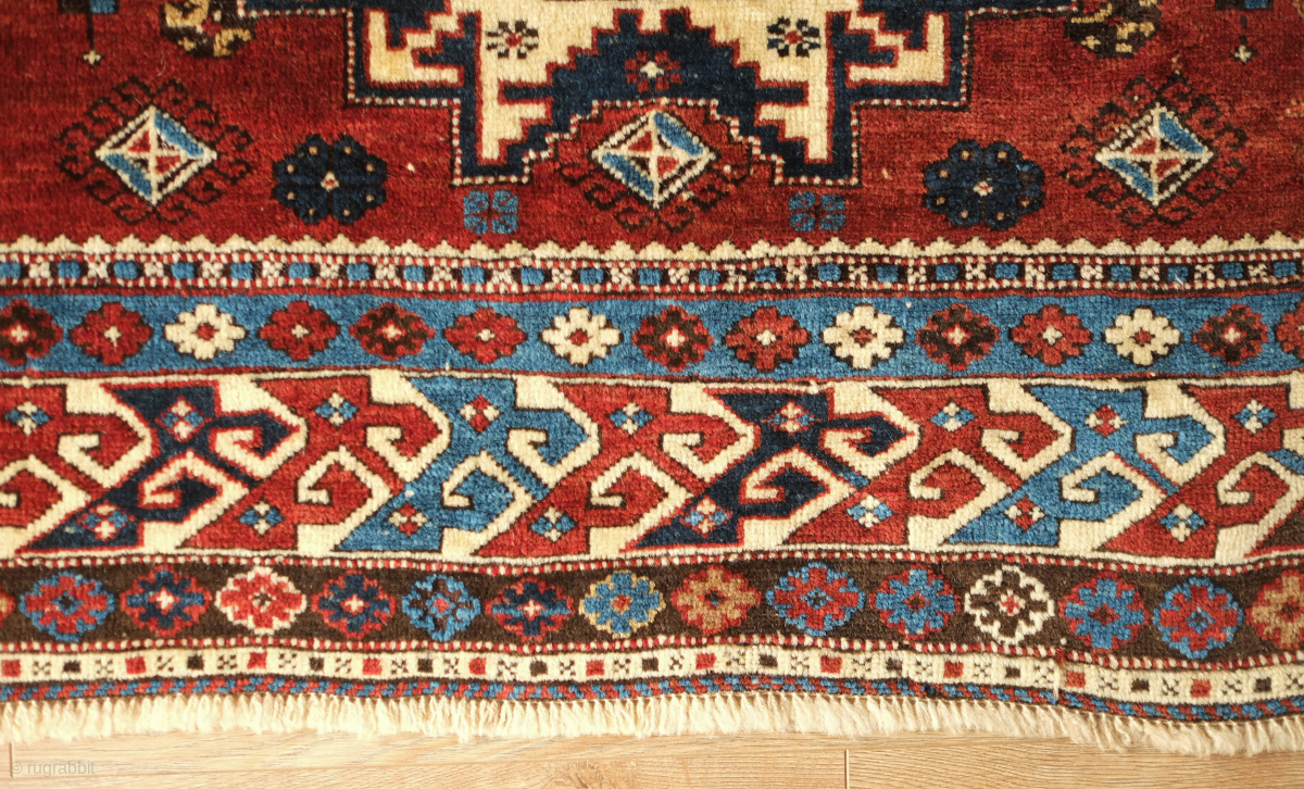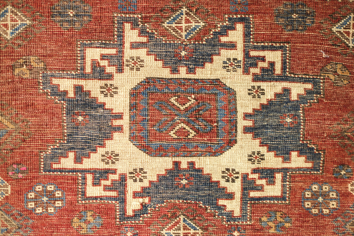 Lesghi Star rug, 19th century. Velvet-like wool. Strong abrash. One small repair in one of the stars. 130 x 168 cm