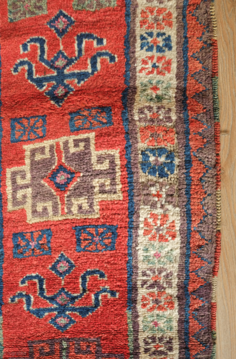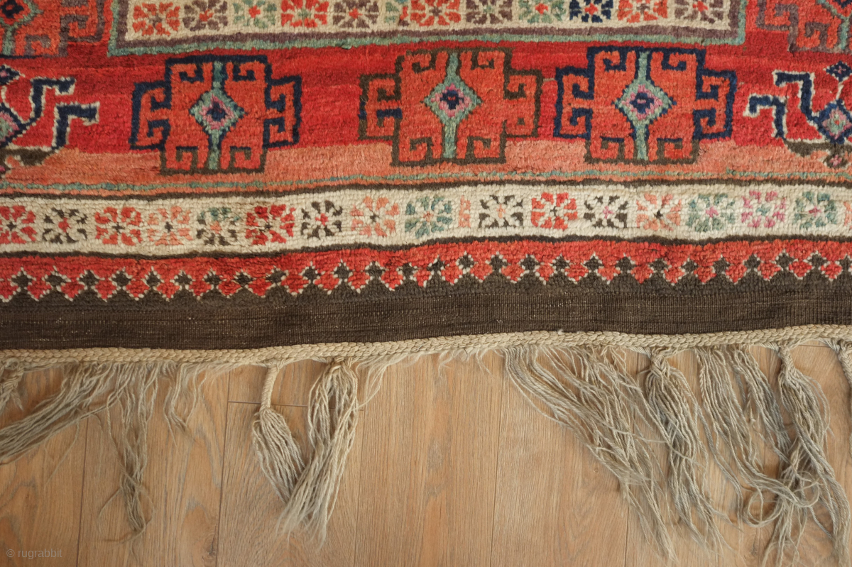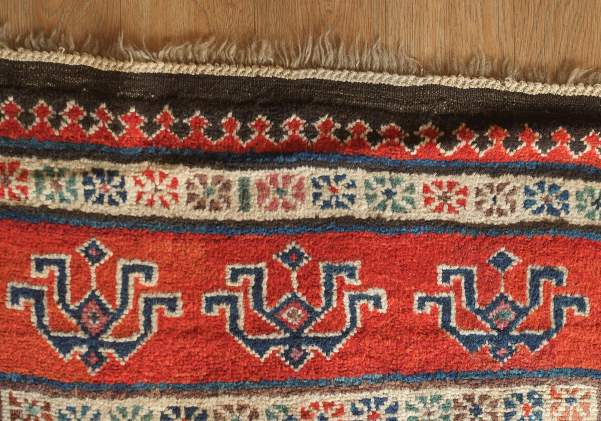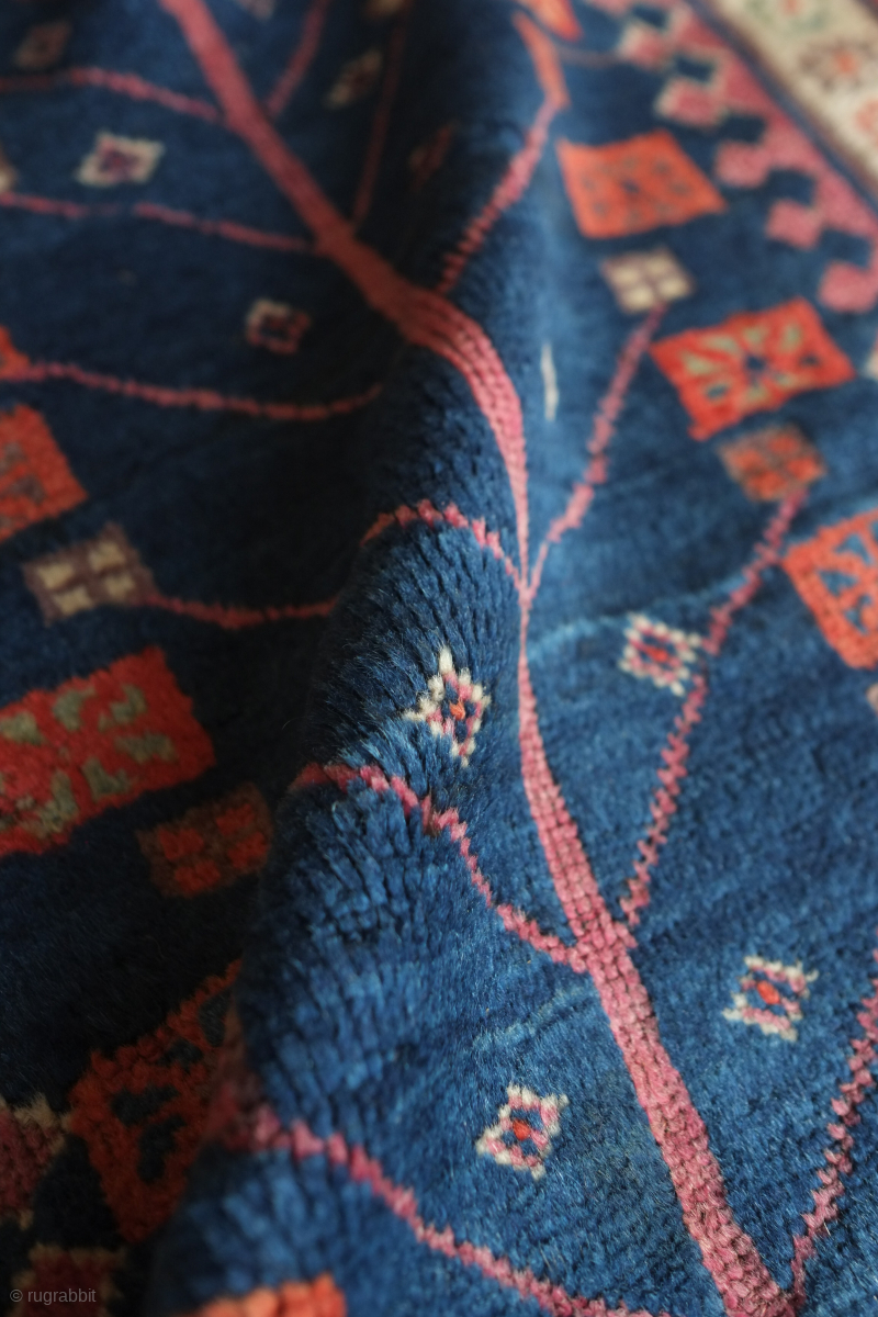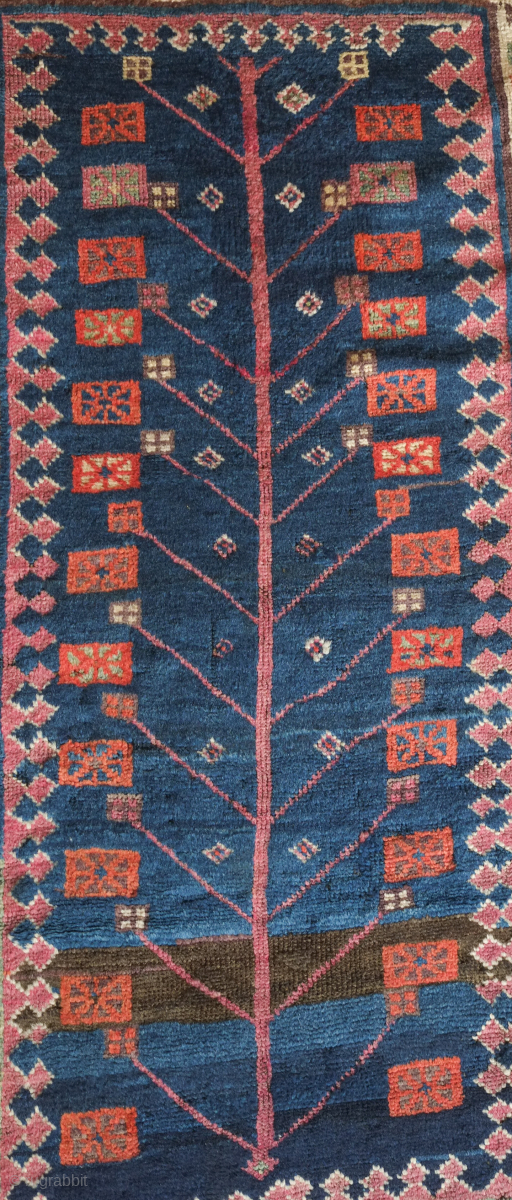 Kurdish rug with tree of life design, 19th century. This Anatolian Kurdish rug is probably from the Sivas area. Deep indigo in the ground. The border is populated with unique geometric floral palmette motifs. 137 x 201 cm. Contact danauger@tribalgardenrugs.com