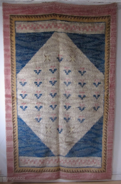 "Solnedgang" rug ("Sunset"), Sweden, 1947, riya rug signed by B.Perrson, very good condition, the tiger effect has been done by mixing ivory wools with natural brown wool, 257/160cm. inquiry: thierrygirard@protonmail.ch