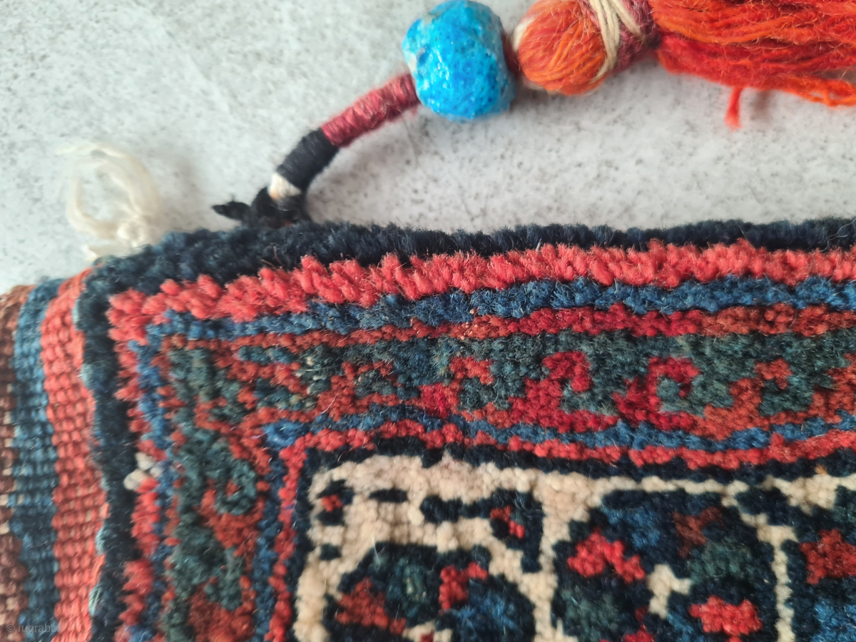 Adorable Luri or Afshar small Chanteh with lovely little details. Very good condition, full pile. Natural color. Dimensions: ~ 30x33cm.