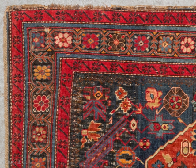 Caucasian Kuba rug with bird motifs, late 19th century – border wear, small hole near a corner – 180 × 124 cm.