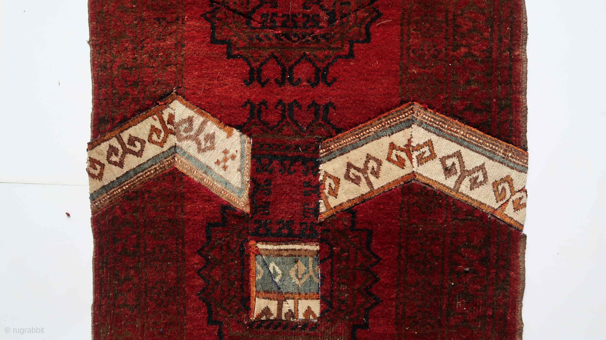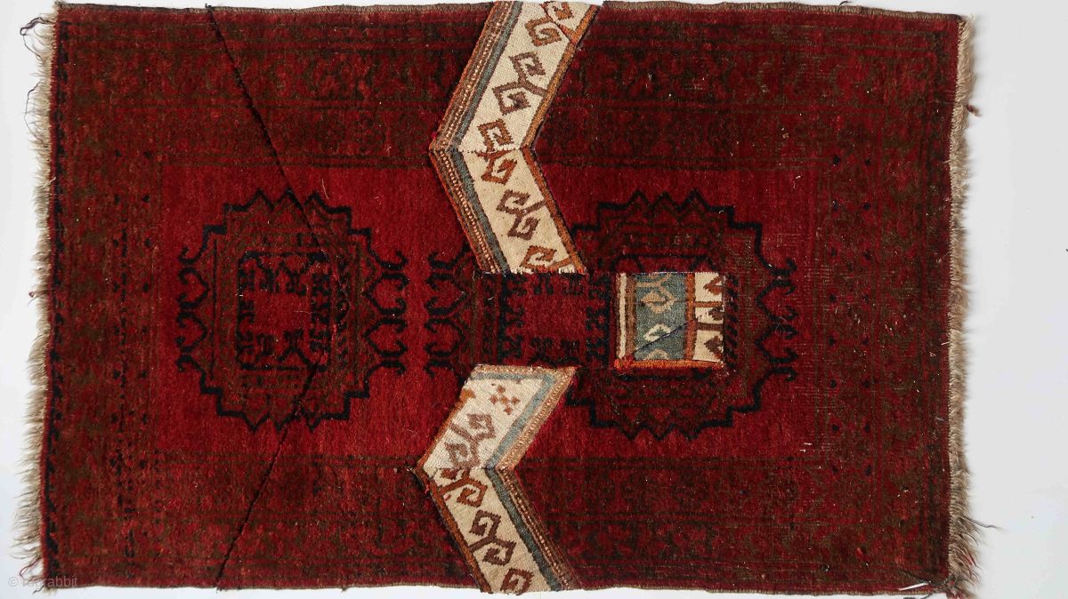 Fragmented rug, ca ; 80 x 125 cm. wool on wool, could benefit from a bath and some repairs. old/antique . Different influences and motifs . 75 euro ex transportcosts.
