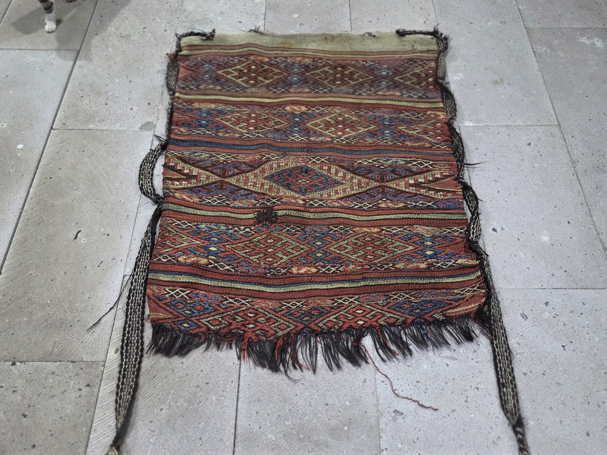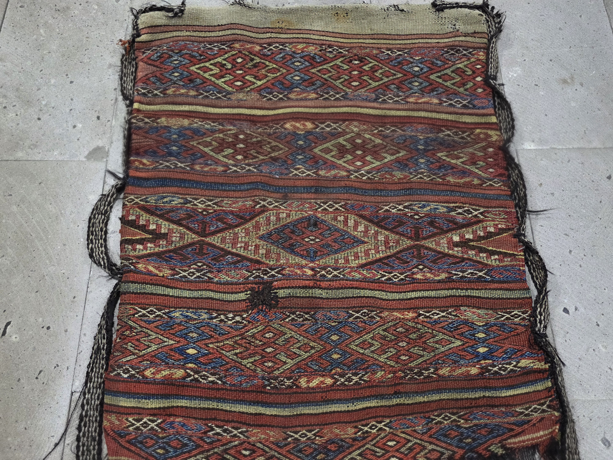 Toros nomads' woven sacks with wonderful dyes. Embroidered on both sides.