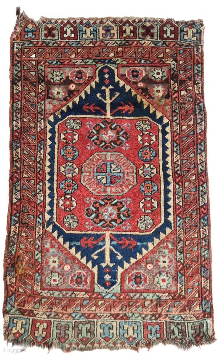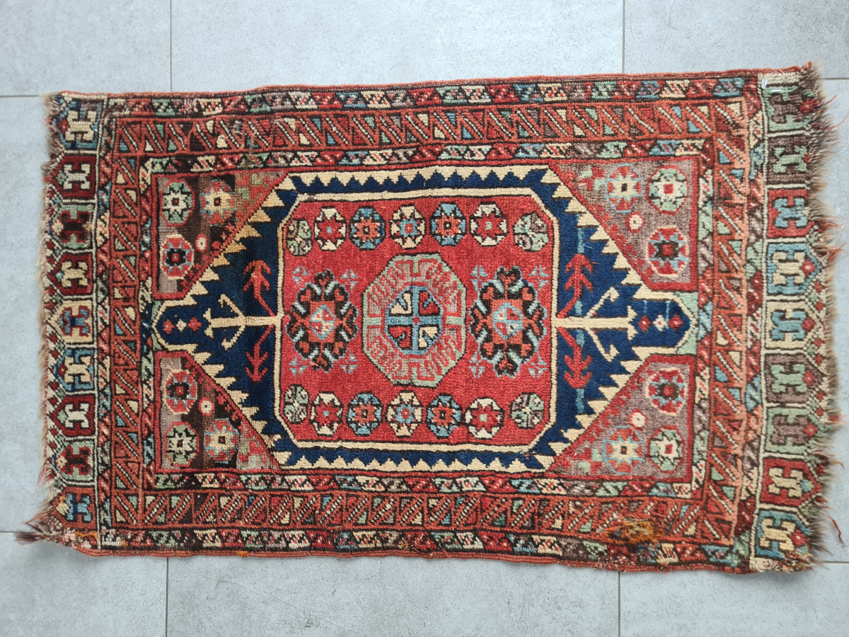 Antique Yastik rug from Central Anatolia (19. Century) with beautiful, typical regional colors. Lovely pattern. Dimensions: 62 x 100 cm. The pile is largely well-preserved and high. However, the rug has a small missing section (see photos) and the ends are not fully secured. a wonderful collector's item.
